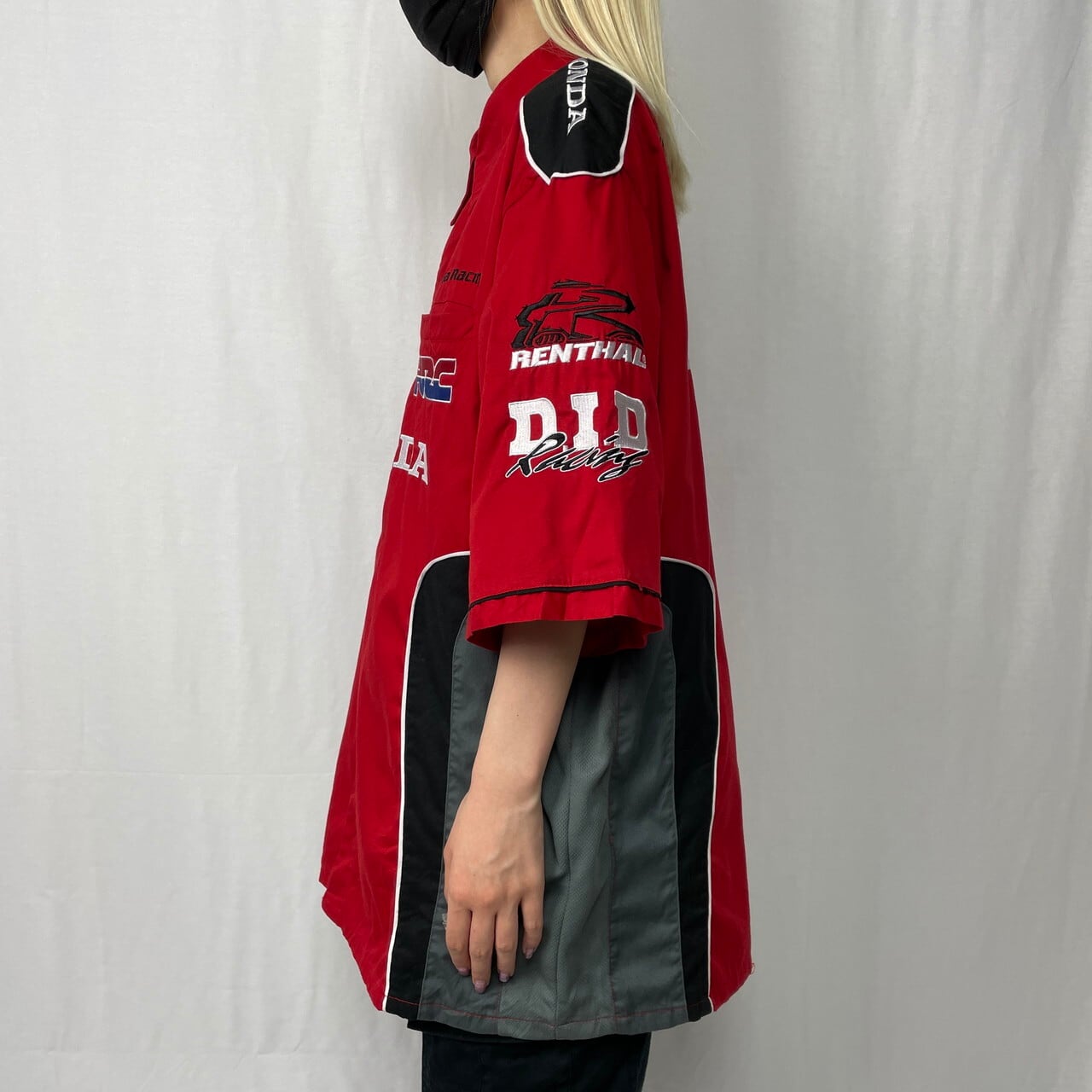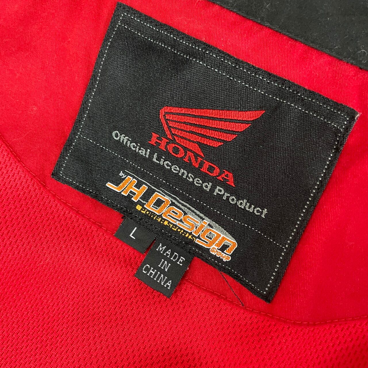 HONDA JH DESIGN ジェフハミルトン 企業ロゴ 刺繍 レーシングシャツ メンズ2XL相当 古着 メッシュ切り替え ホンダ レッド 赤色 ビッグサイズ 大きいサイズ【半袖シャツ】【FSS2308-30】