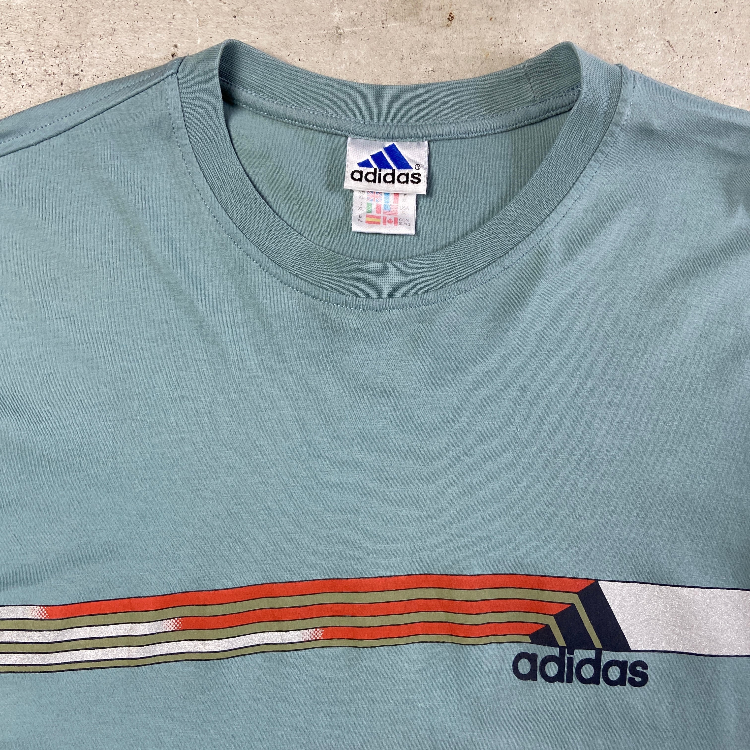 90年代 トルコ製 adidas アディダス パフォーマンスロゴ プリントTシャツ メンズXL 古着 リフレクター 90s ビンテージ ヴィンテージ ユーロ ヨーロッパ企画 グリーン系 グレー系【Tシャツ】【SA2501-50】