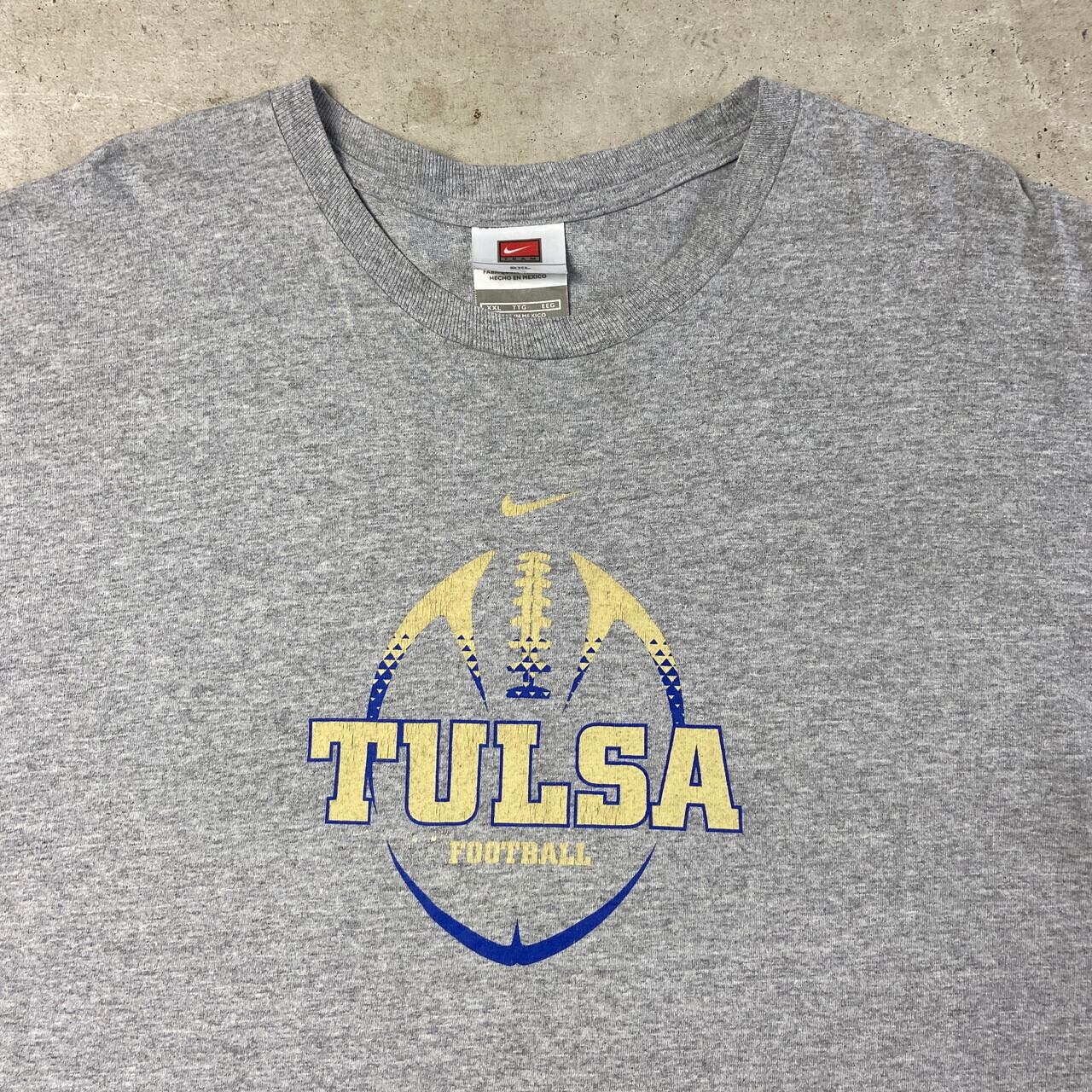 00年代 NIKE TEAM ナイキ TULSA FOOTBALL カレッジ チーム Tシャツ メンズ2XL 古着 グレー 灰色 ビッグサイズ 大きいサイズ JUST DO IT バックプリント 両面プリント 【Tシャツ】【SA2501-50】