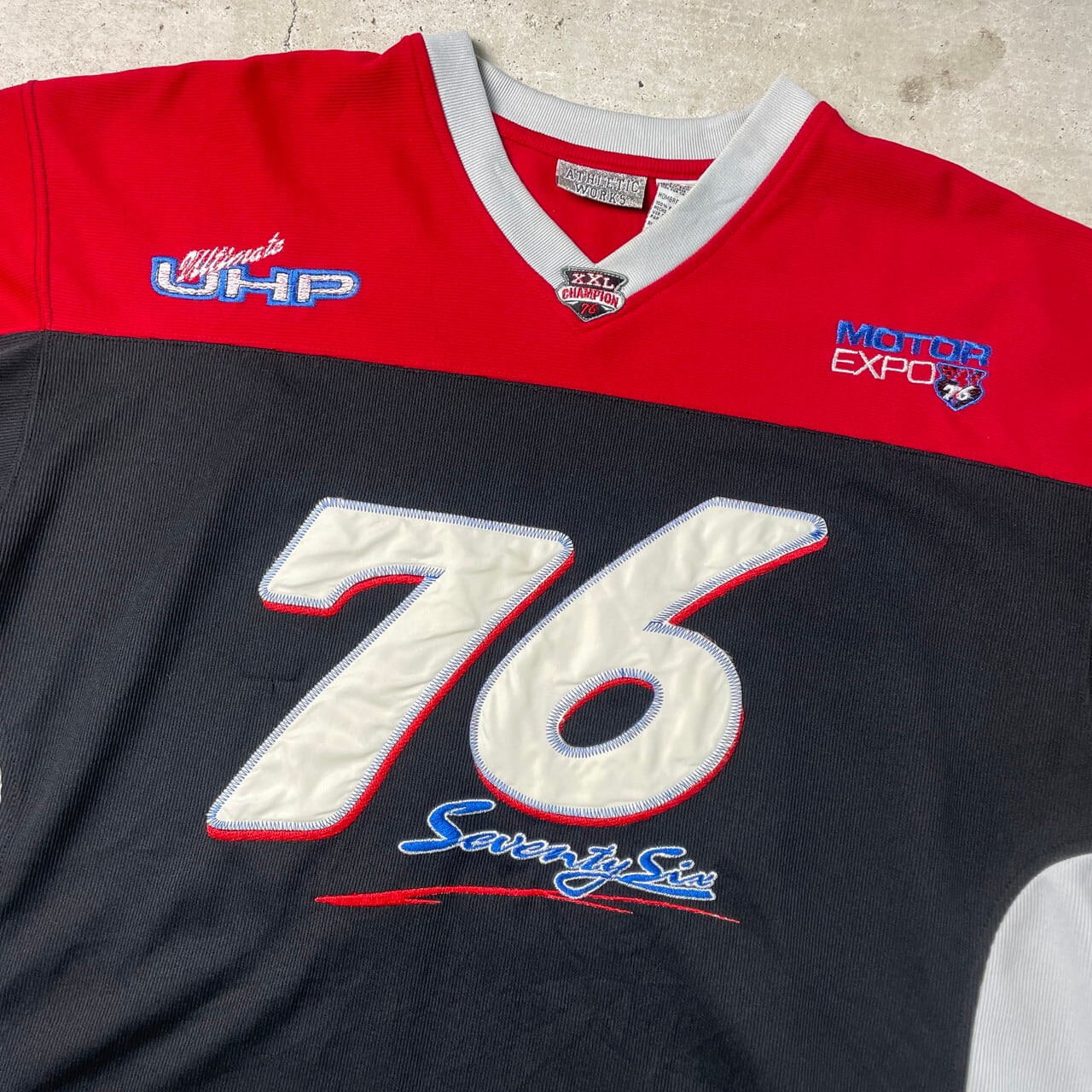 76 MOTOR EXPO フットボールシャツ メンズ2XL相当 古着 ユニフォーム アメフト モーターサイクル 【ゲームシャツ】【SS2401-50】