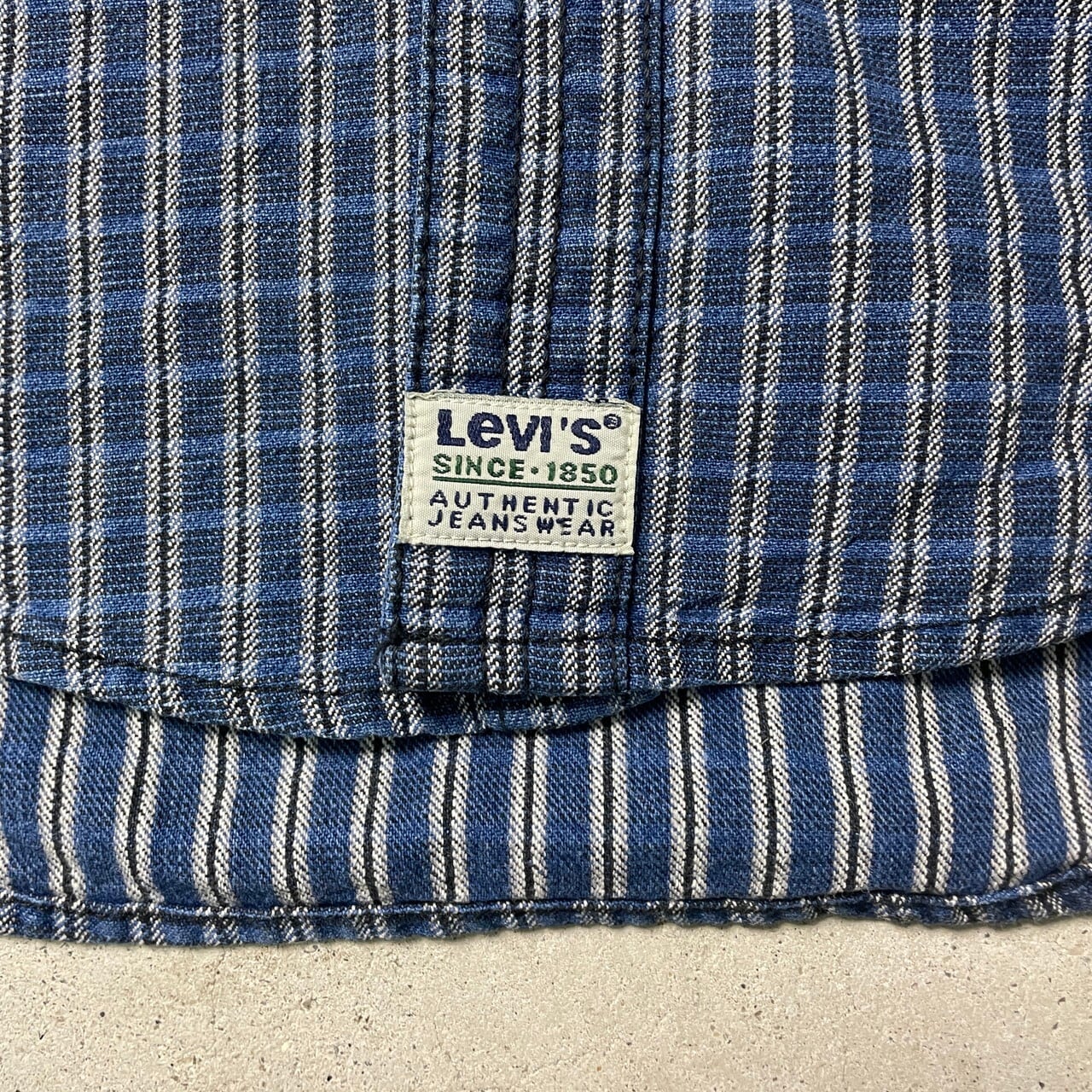 90年代 Levi's リーバイス 長袖 ストライプシャツ メンズM相当 古着 90s ビンテージ ヴィンテージ ブルー ブラック 青色 黒【長袖シャツ】