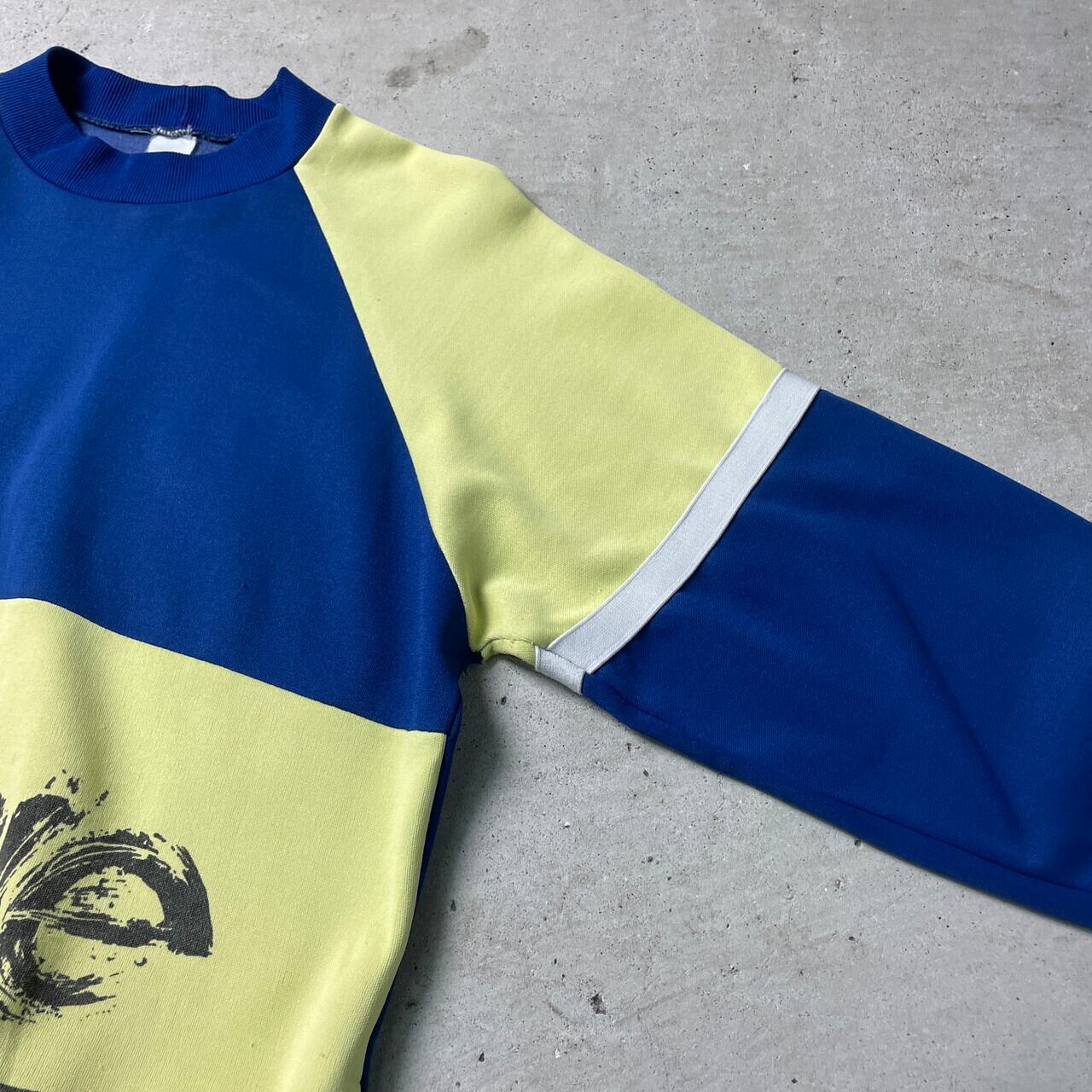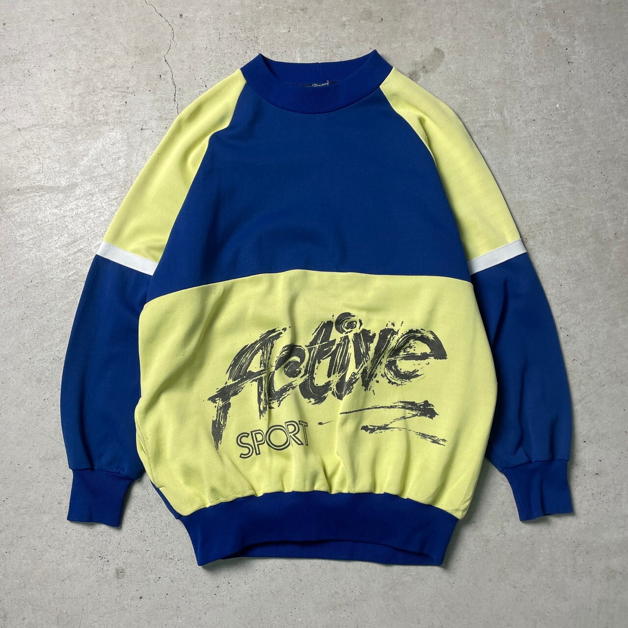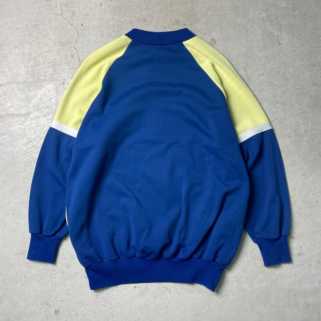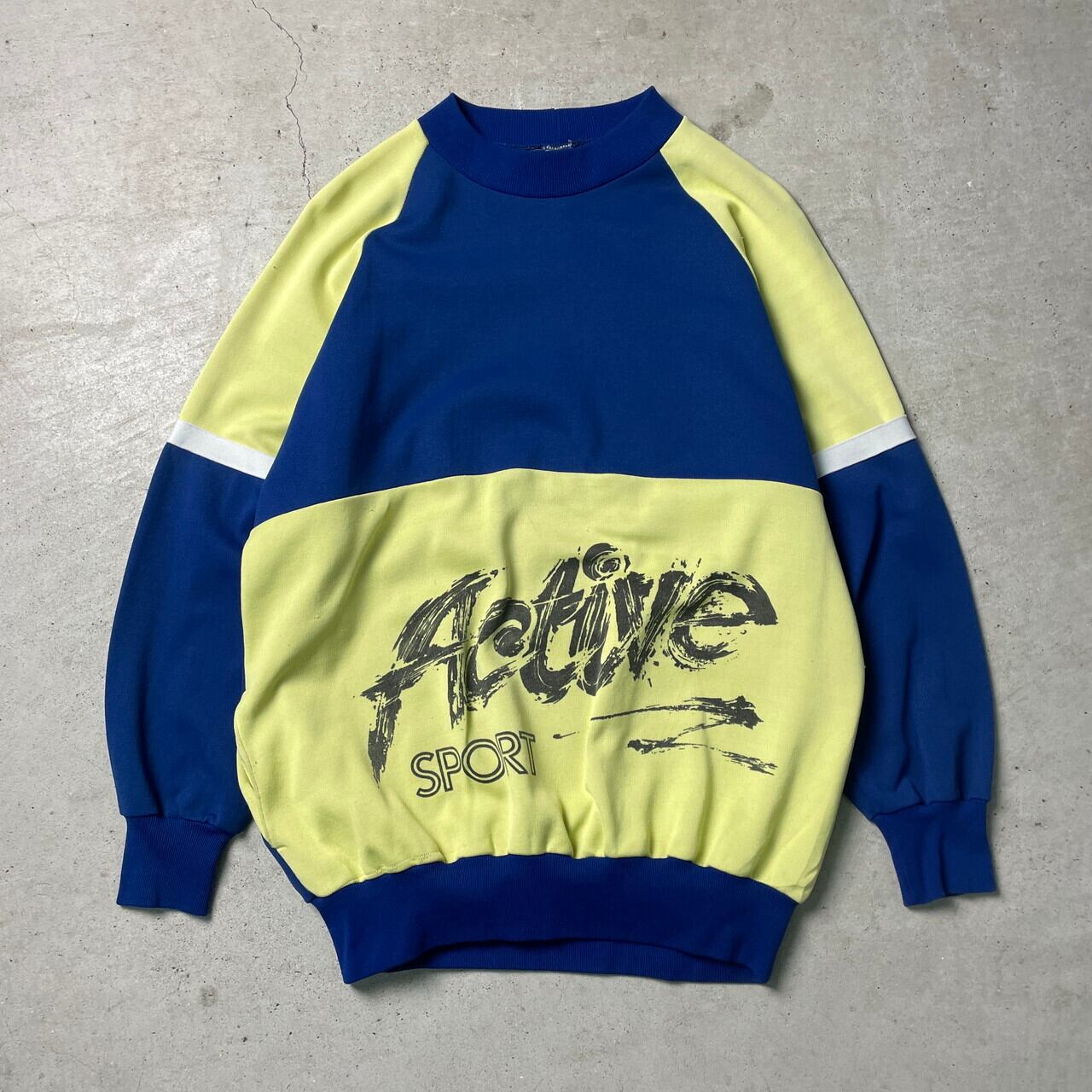 80年代〜 ユーロ ACTIVE SPORT プリント ジャージスウェットシャツ メンズS-M相当 レディース 古着 80s ヴィンテージ ビンテージ トレーナー ハンドポケット付き 切替 ブルー レモンイエロー 青色 黄色 【スウェット】