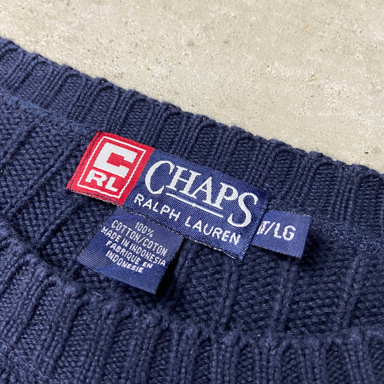 ■CHAPS Ralph Lauren チャップス ラルフローレン コットンニットセーター メンズXL相当 古着 オールドラルフローレン ワンポイント刺繍 クルーネック ネイビー 紺色【ニットセーター】