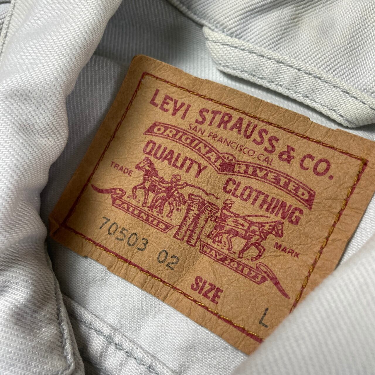 ■90年代 チュニジア製 Levi's ユーロリーバイス 70503 02 アイスグレー デニムジャケット メンズL 古着 90s ビンテージ ヴィンテージ 灰色【デニムジャケット】