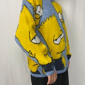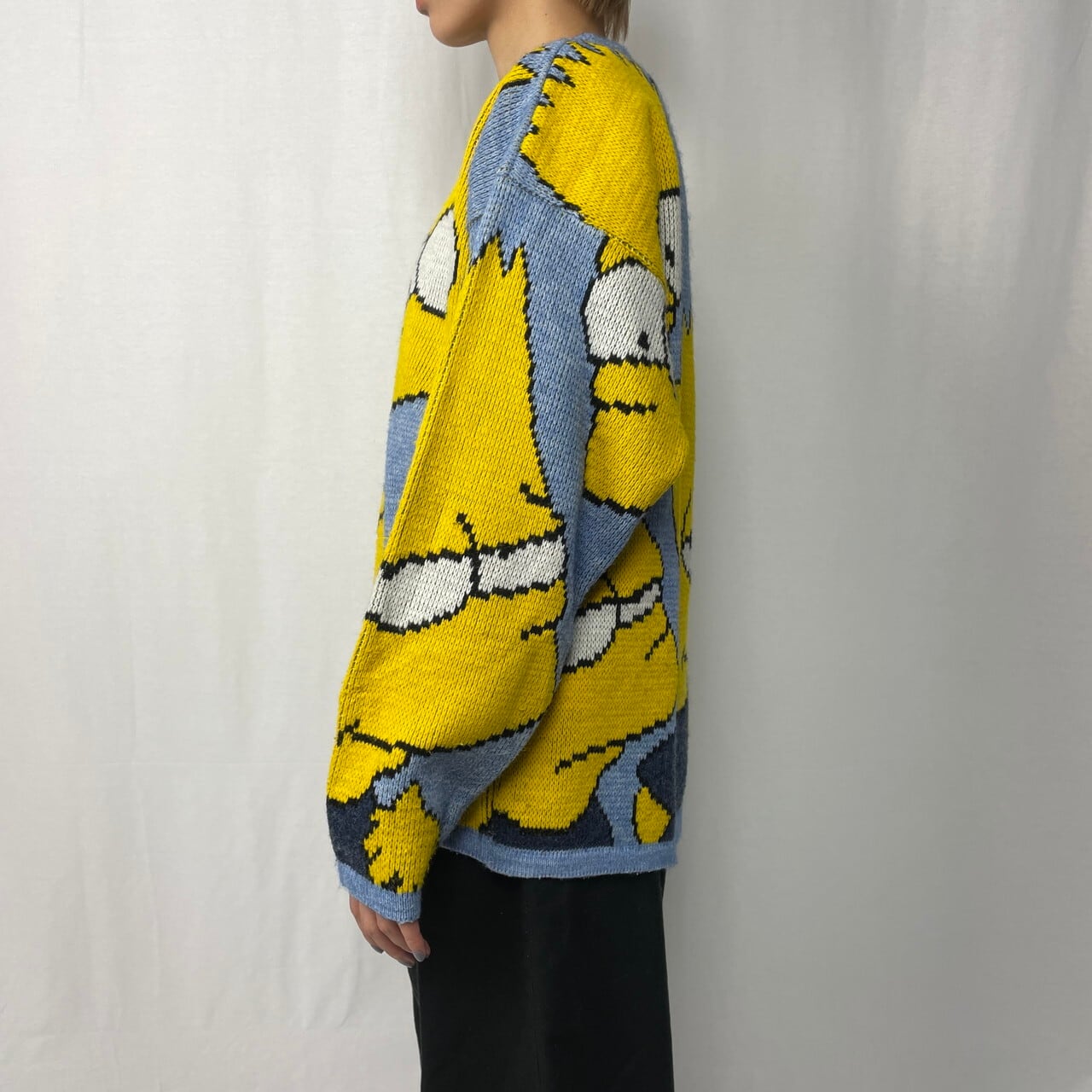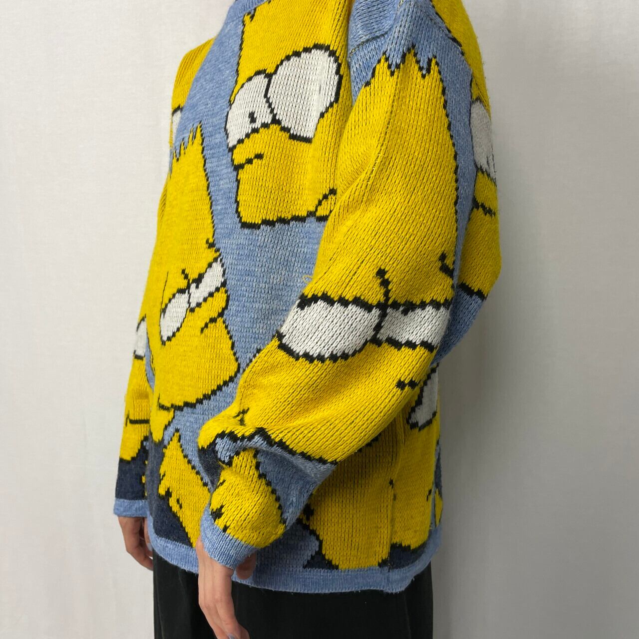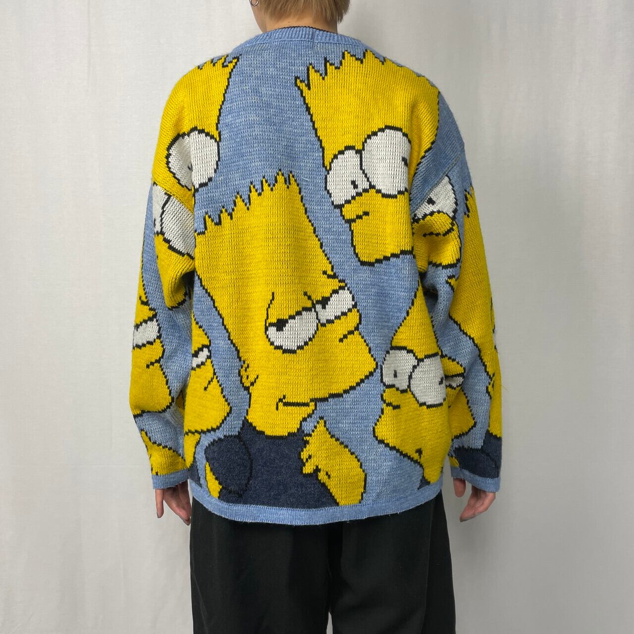 90年代 SIMPSONS シンプソンズ バート・シンプソン 総柄 キャラクター ニットセーター メンズM相当 古着 90s ビンテージ ヴィンテージ ライトブルー イエロー 水色 黄色【ニットセーター】