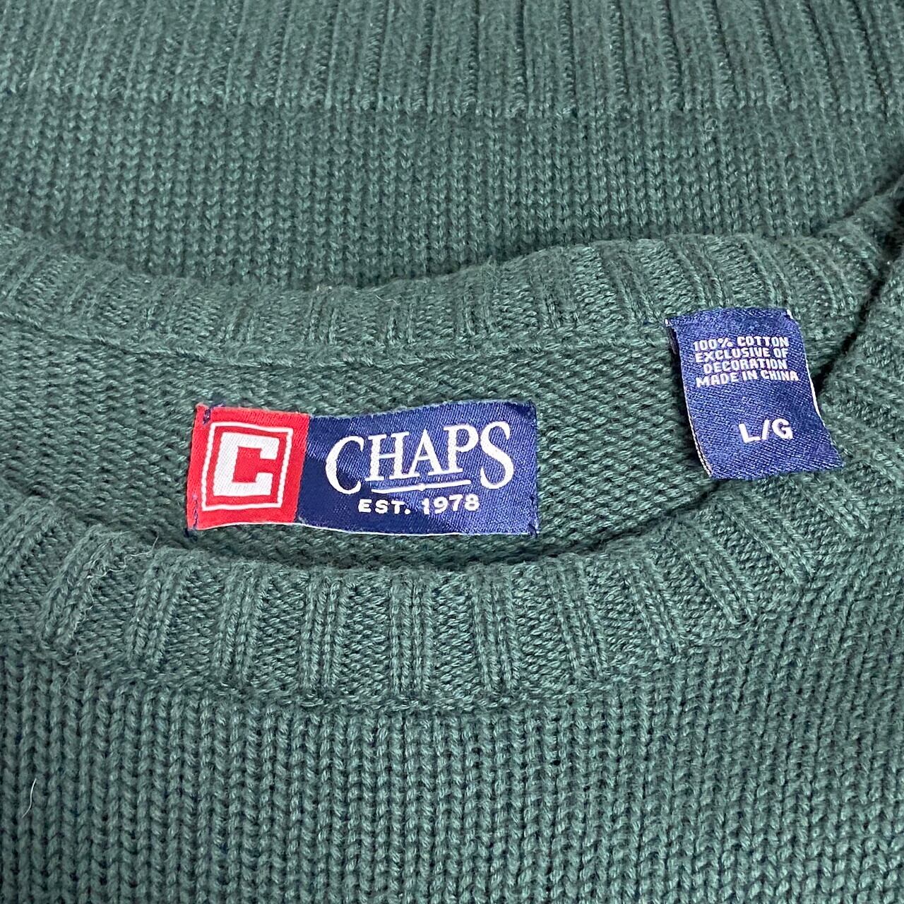 CHAPS チャップス ワンポイントロゴ 刺繍 コットンニットセーター メンズL 古着 クルーネック グリーン 緑色【ニットセーター】