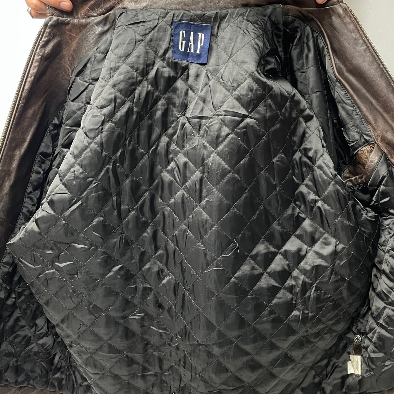 ■90年代 OLD GAP オールドギャップ レザージャケット メンズL相当 古着 90s ヴィンテージ ビンテージ スポーツジャケット シングルライダース ダークブラウン 茶色 キルティンググライナー 【レザージャケット】