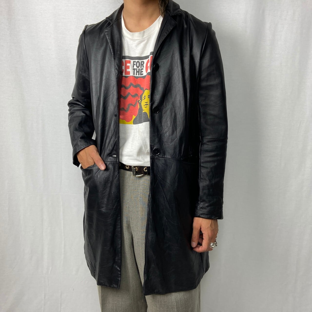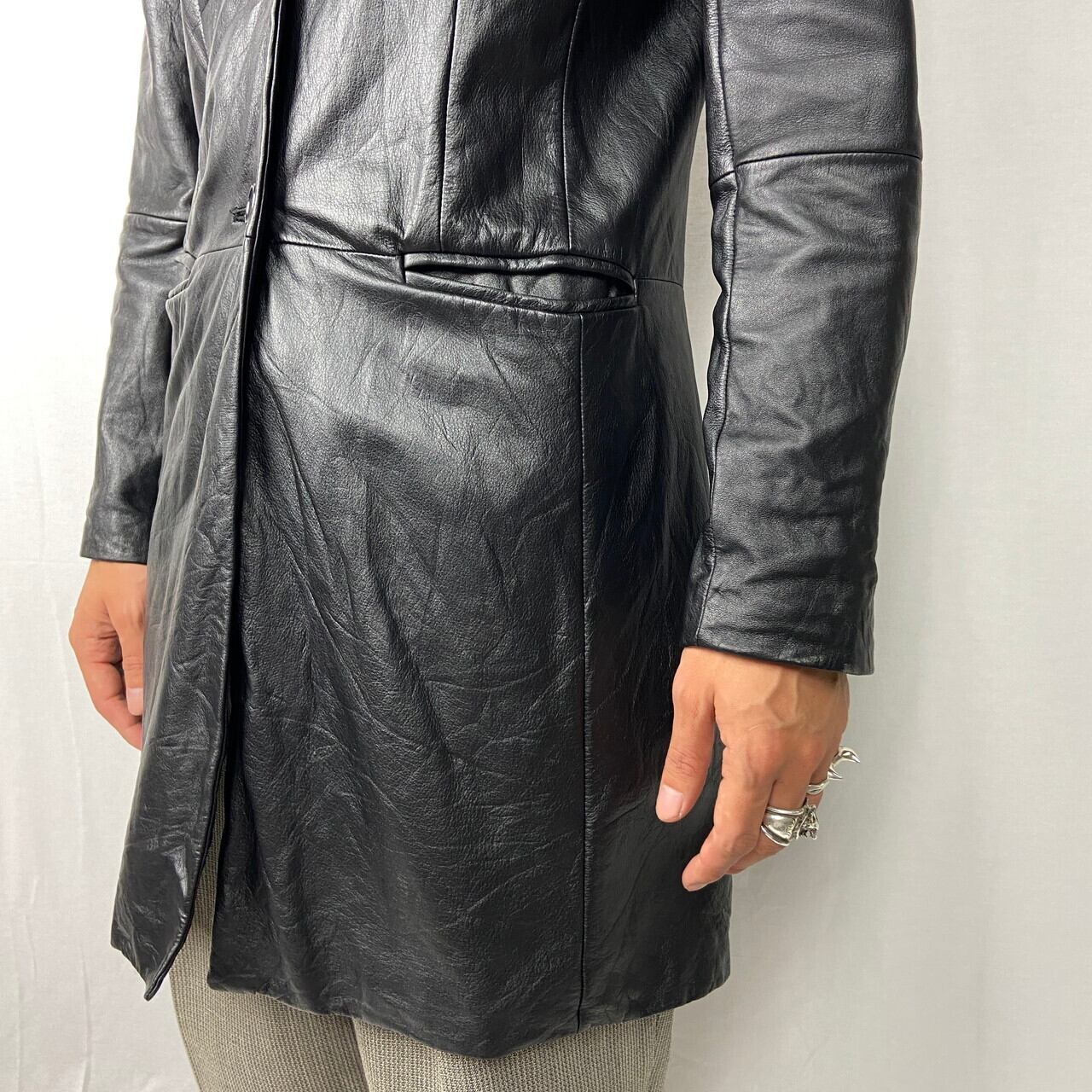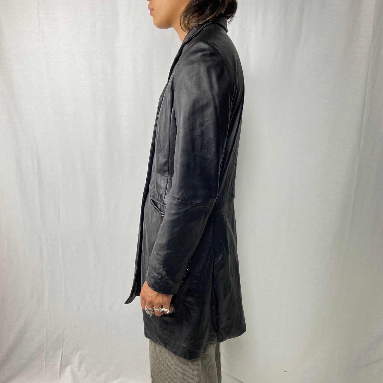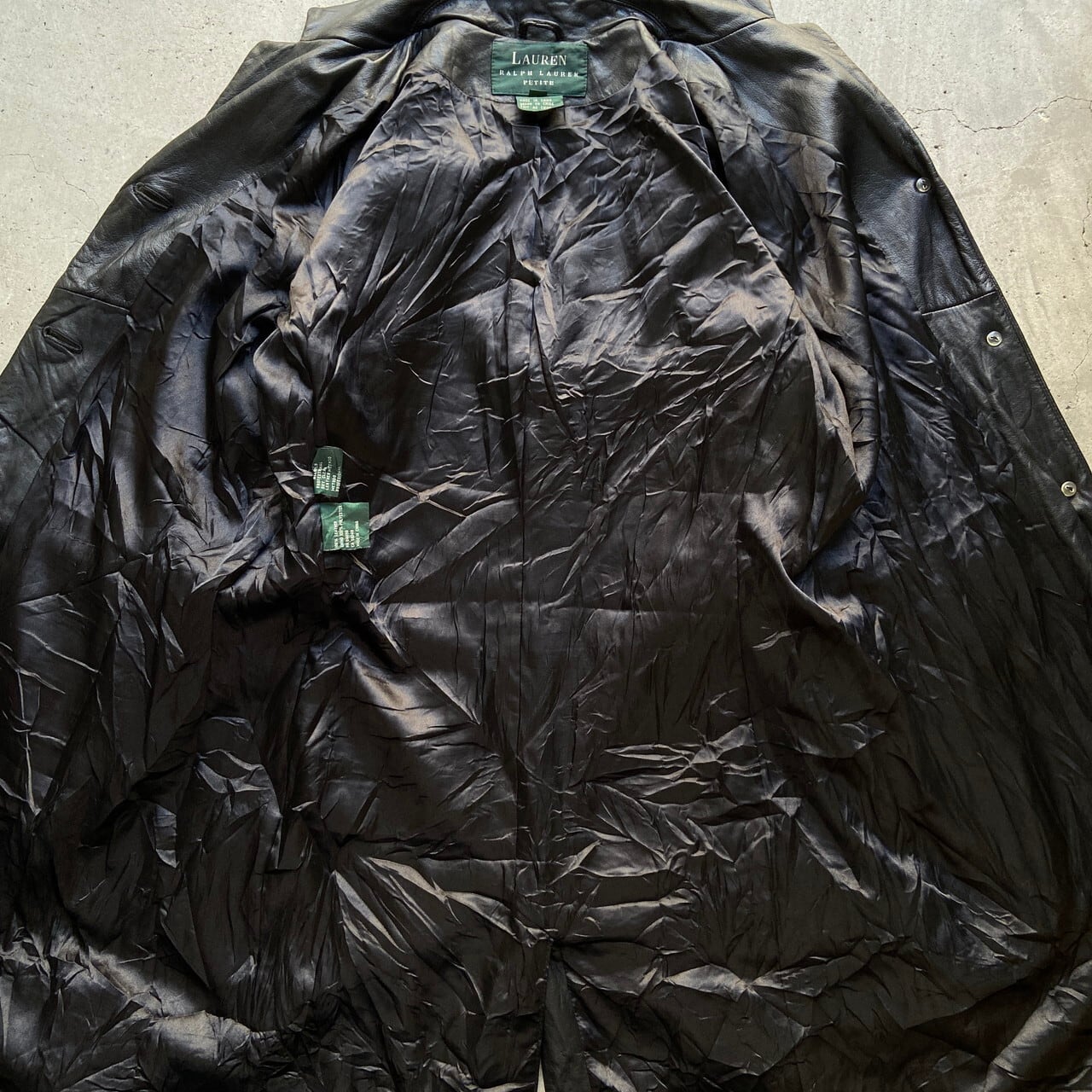 ■LAUREN RALPH LAUREN ローレンラルフローレン レザーハーフコート レディースM相当 メンズS相当 古着 チェスターコート ブラック 黒【レザージャケット】