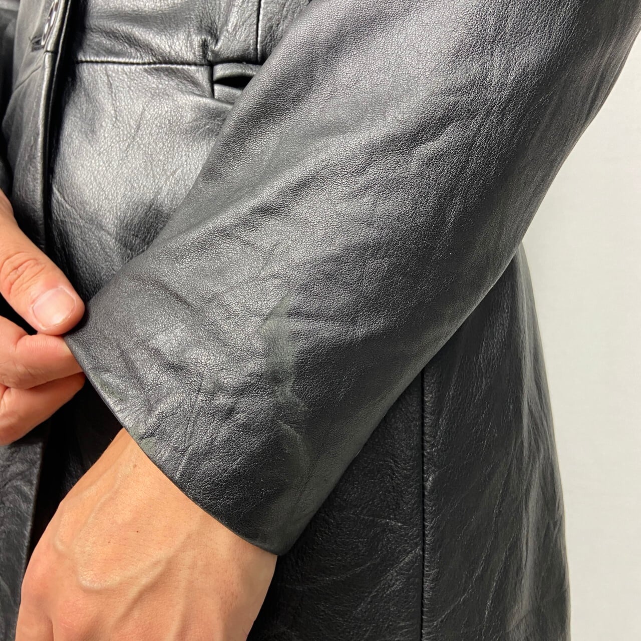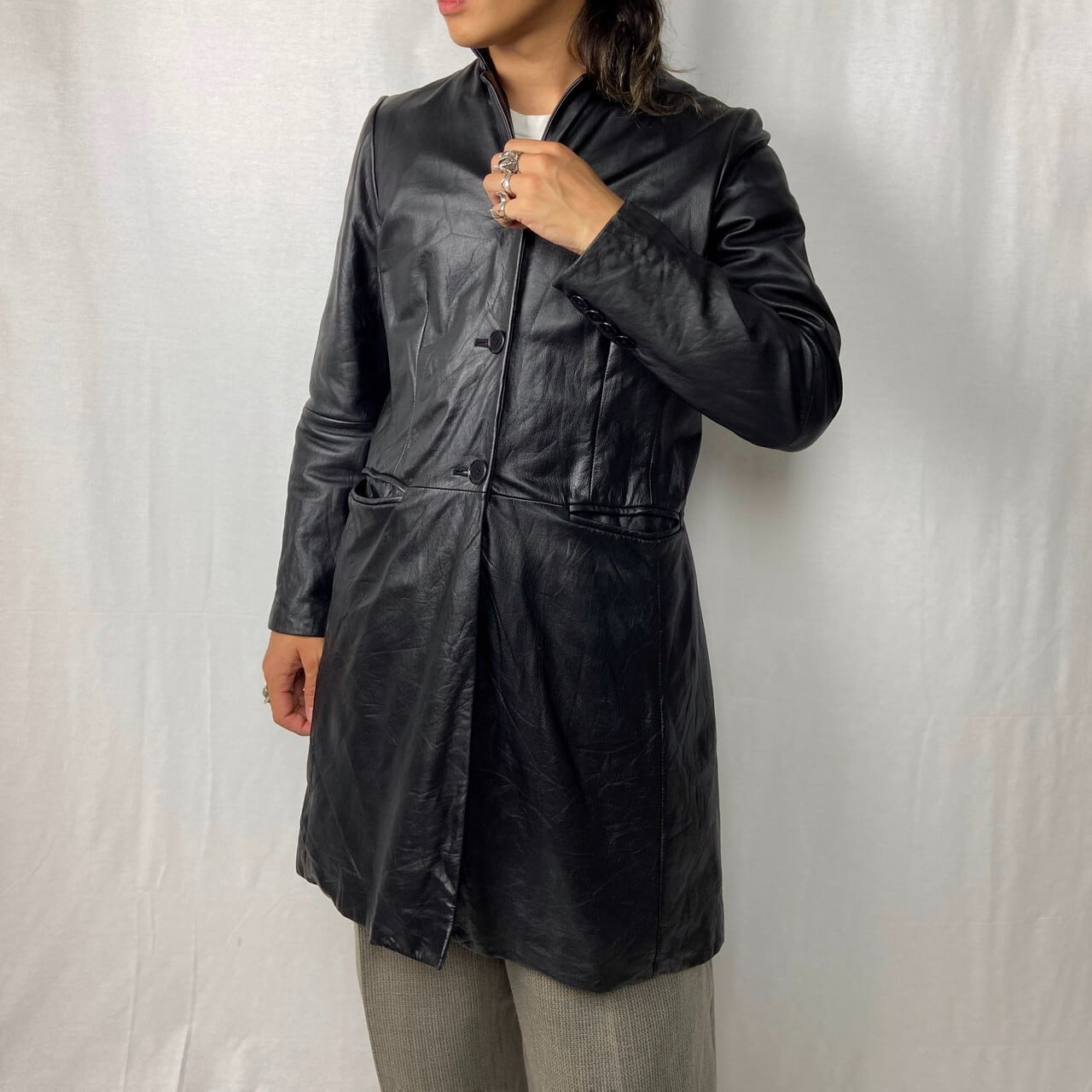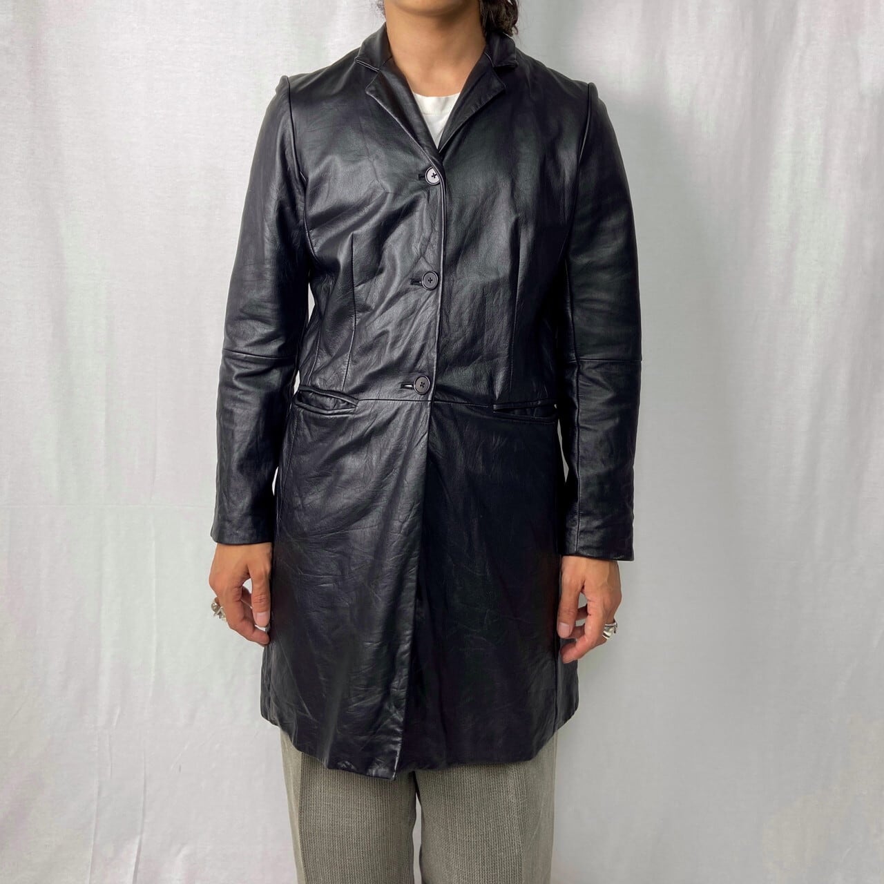 LAUREN RALPH LAUREN ローレンラルフローレン レザーハーフコート レディースM相当 メンズS相当 古着 チェスターコート ブラック 黒【レザージャケット】【WS2501-50】