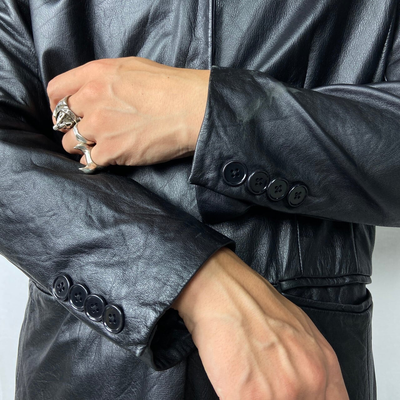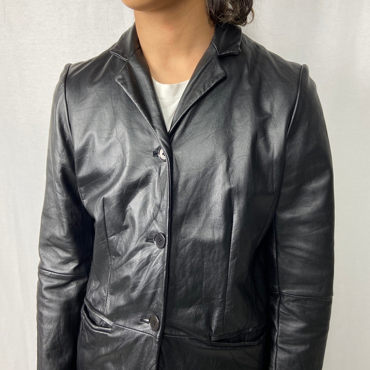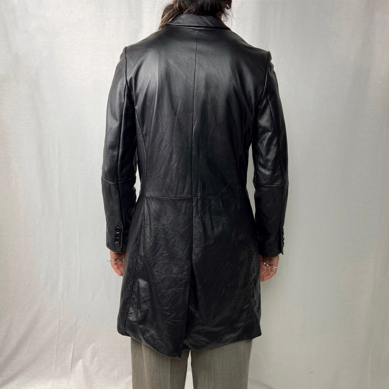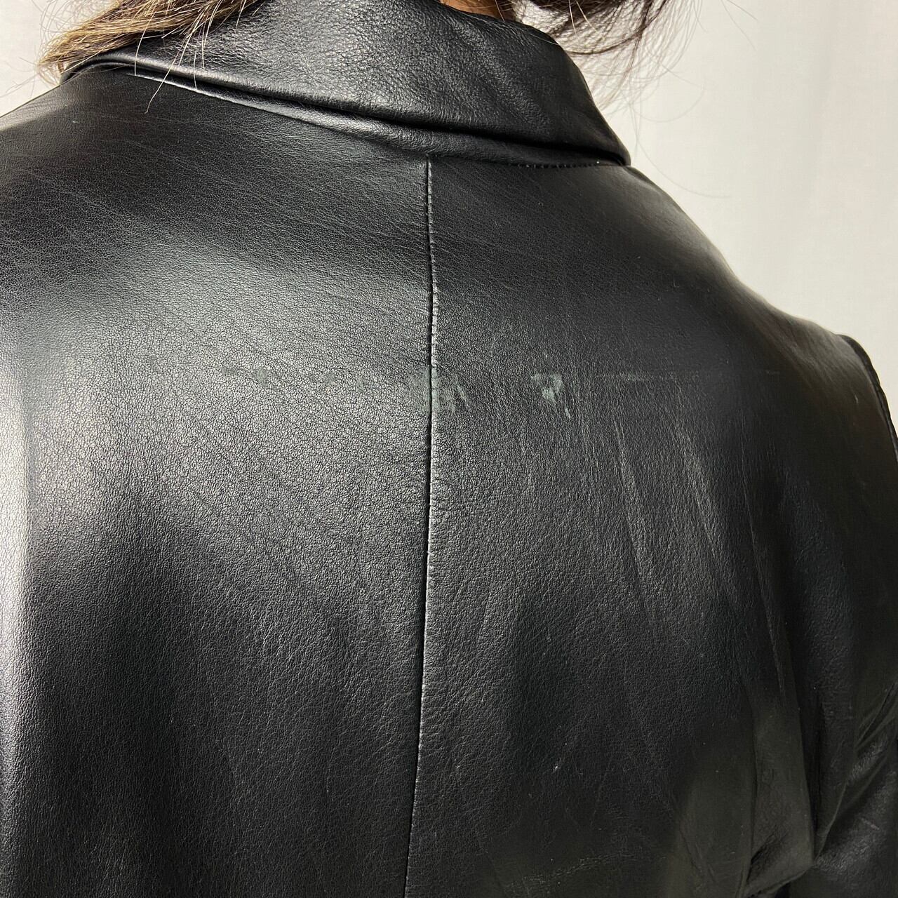 LAUREN RALPH LAUREN ローレンラルフローレン レザーハーフコート レディースM相当 メンズS相当 古着 チェスターコート ブラック 黒【レザージャケット】【WS2501-50】