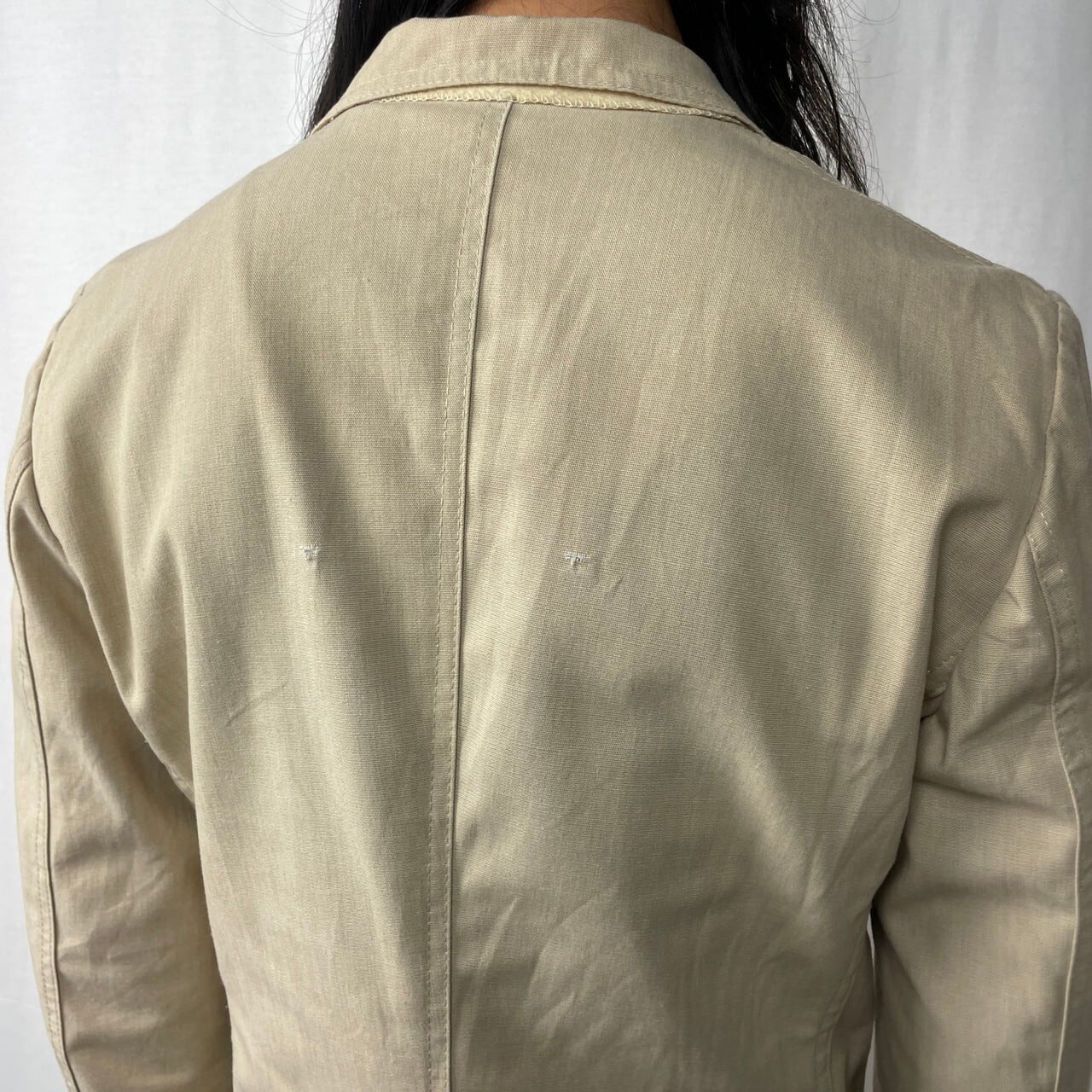 【状態】襟部分やポケット付近に小さな汚れが御座います。背中にダメージが御座います。