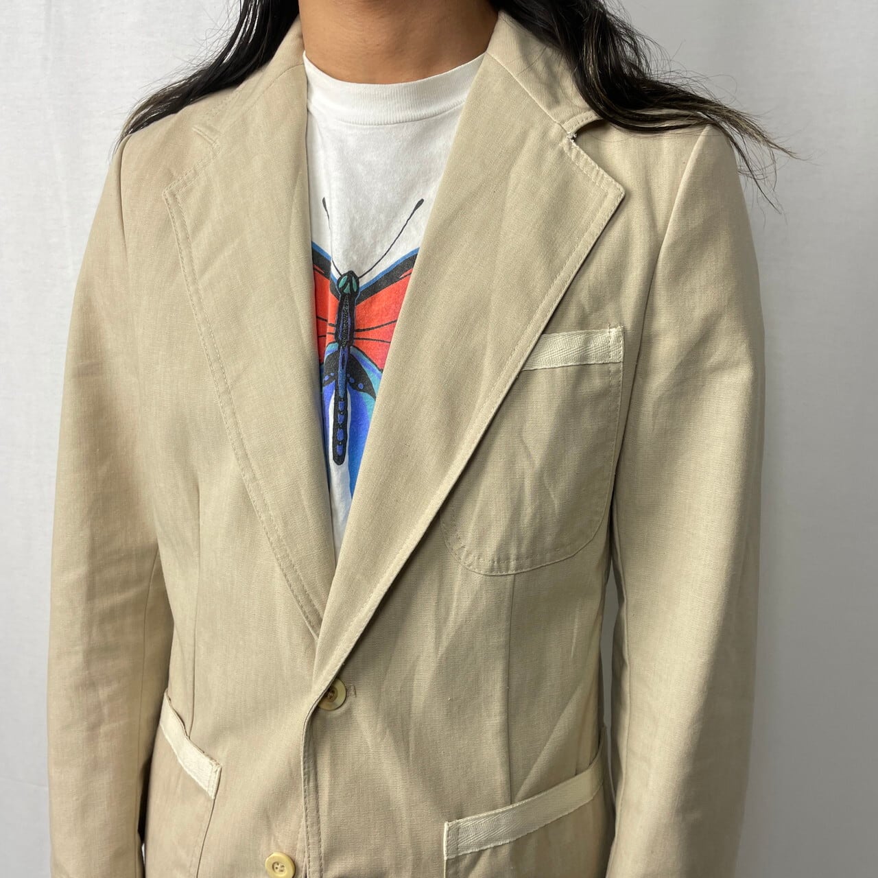 70~80年代 Lee リー リネン テーラードジャケット メンズM-L相当 古着 70s 80s 生成り ベージュ オフホワイト ユニオンチケット 【ブルゾン・ジャケット】【WS2501-50】