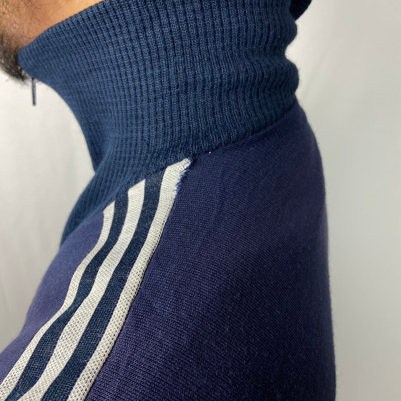 70〜80年代 VENTEX社製 adidas アディダス ハイネック トラックジャケット メンズM-L相当 古着 70s 80s ヴィンテージ ビンテージ トレフォイルロゴ ネイビー ホワイト 紺色 ナス紺 白色【ジャージ・トラックジャケット】