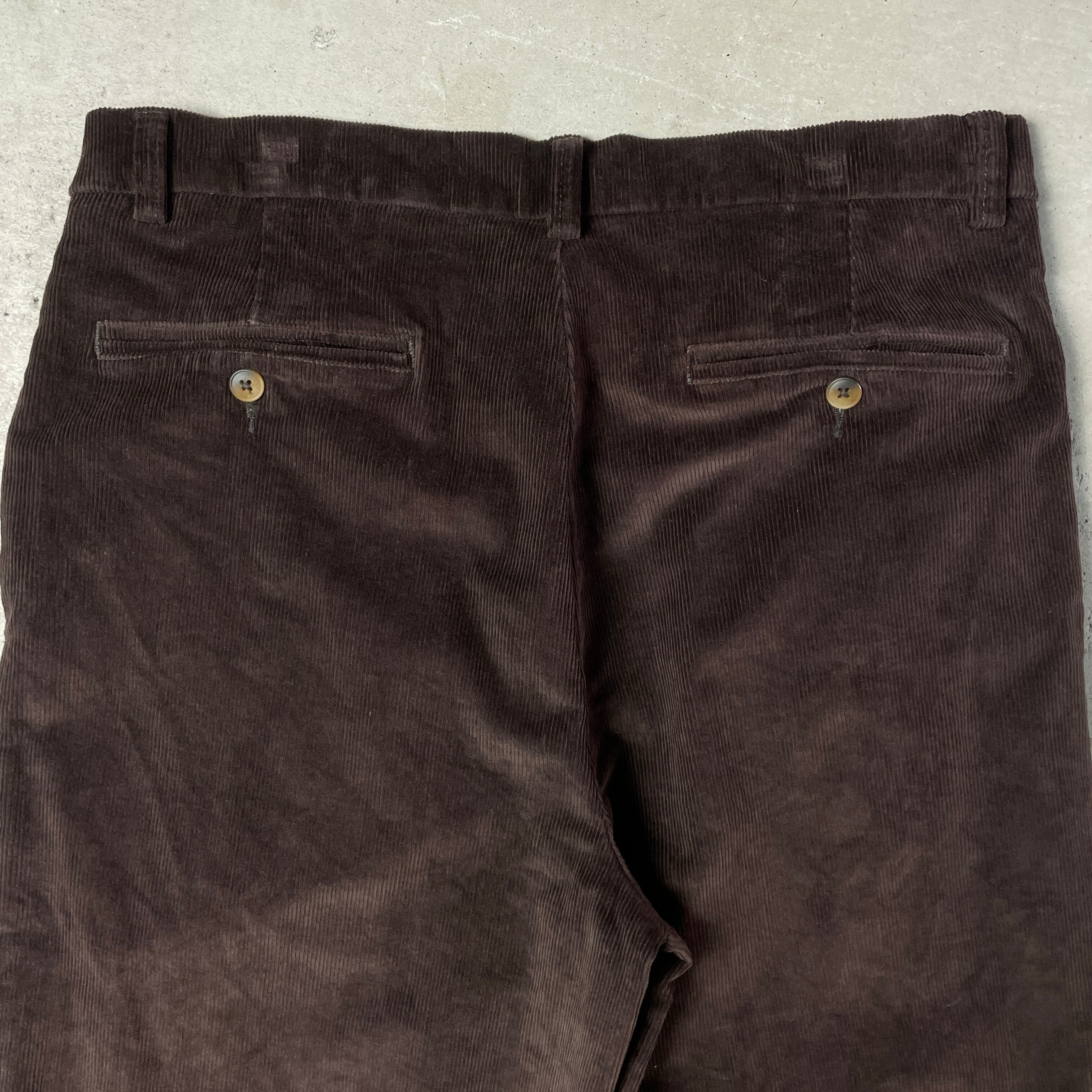 ■ROUNDTREE&YORKE 2タック テーパード ストレッチ コーデュロイパンツ メンズW34 古着 ブラウン 茶色【ロングパンツ】