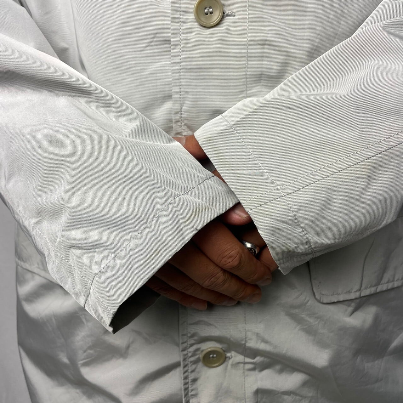 ■90~年代 Polo by Ralph Lauren ポロバイラルフローレン GORE-TEX ゴアテックス ステンカラーコート メンズXL相当 古着 90s ヴィンテージ ビンテージ ロングコート シルバーグレー 光沢 【コート】