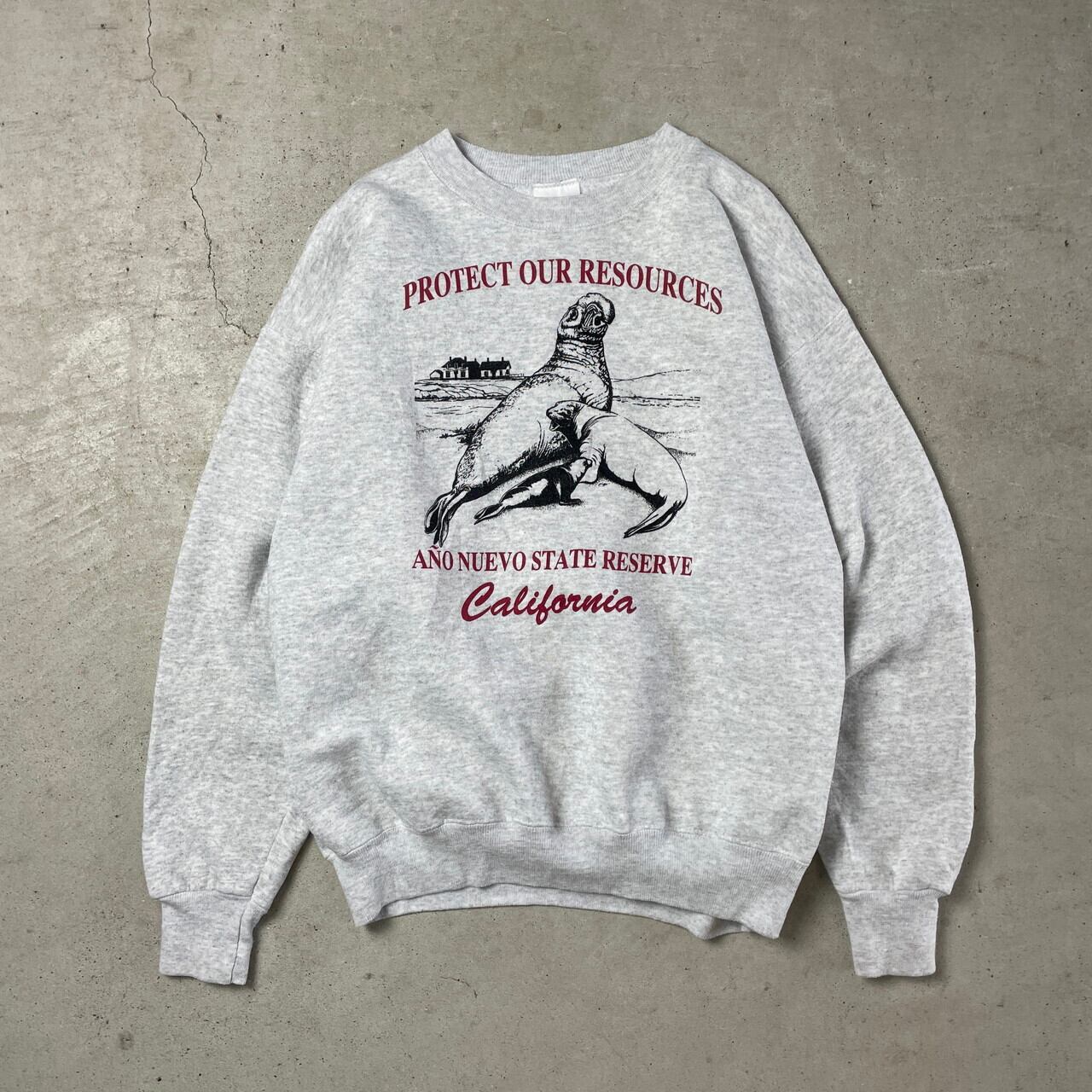 ■90年代 アニマル スウェットシャツ メッセージプリント メンズL 古着 90s カリフォルニア 動物 ビンテージ ヴィンテージ グレー 灰色【スウェット】