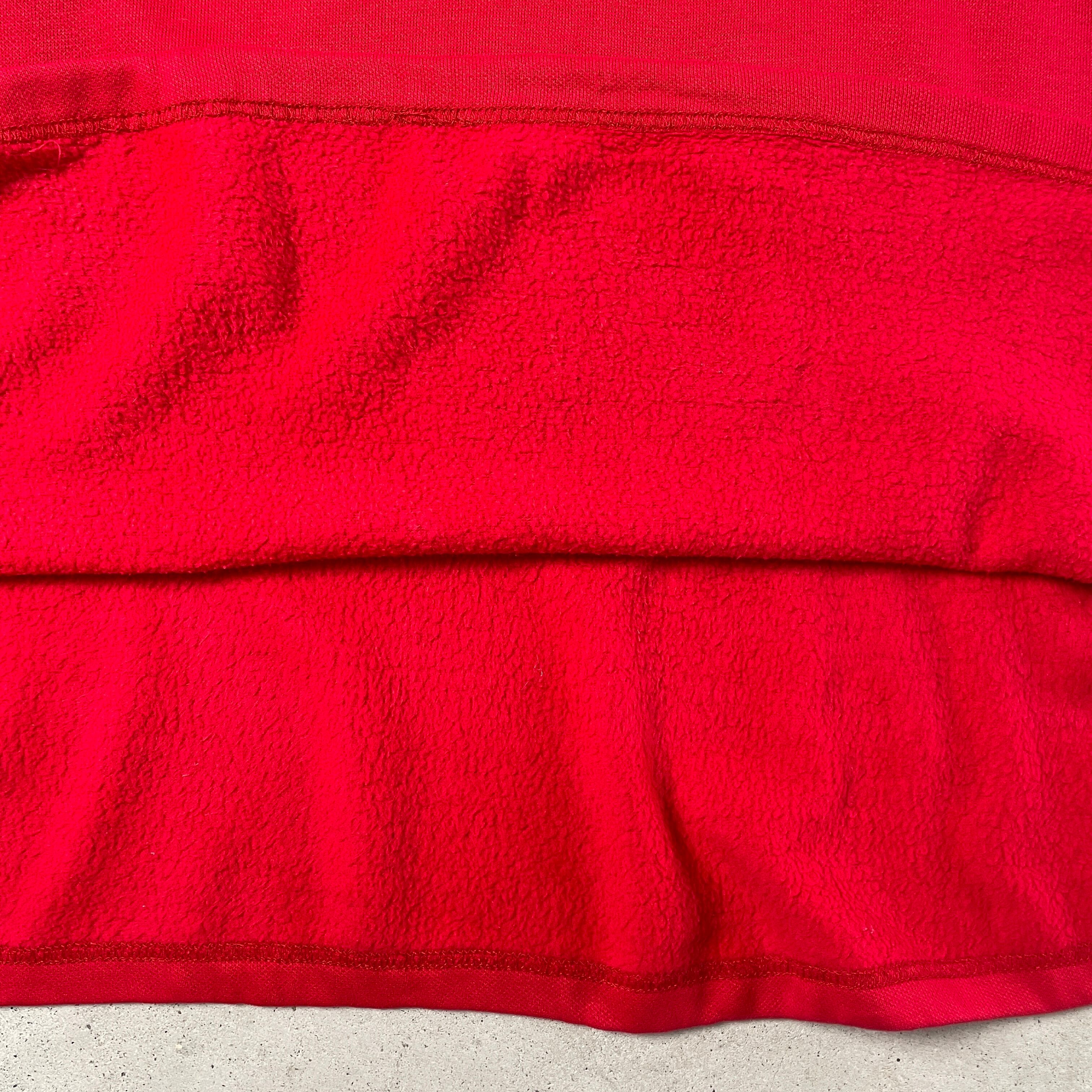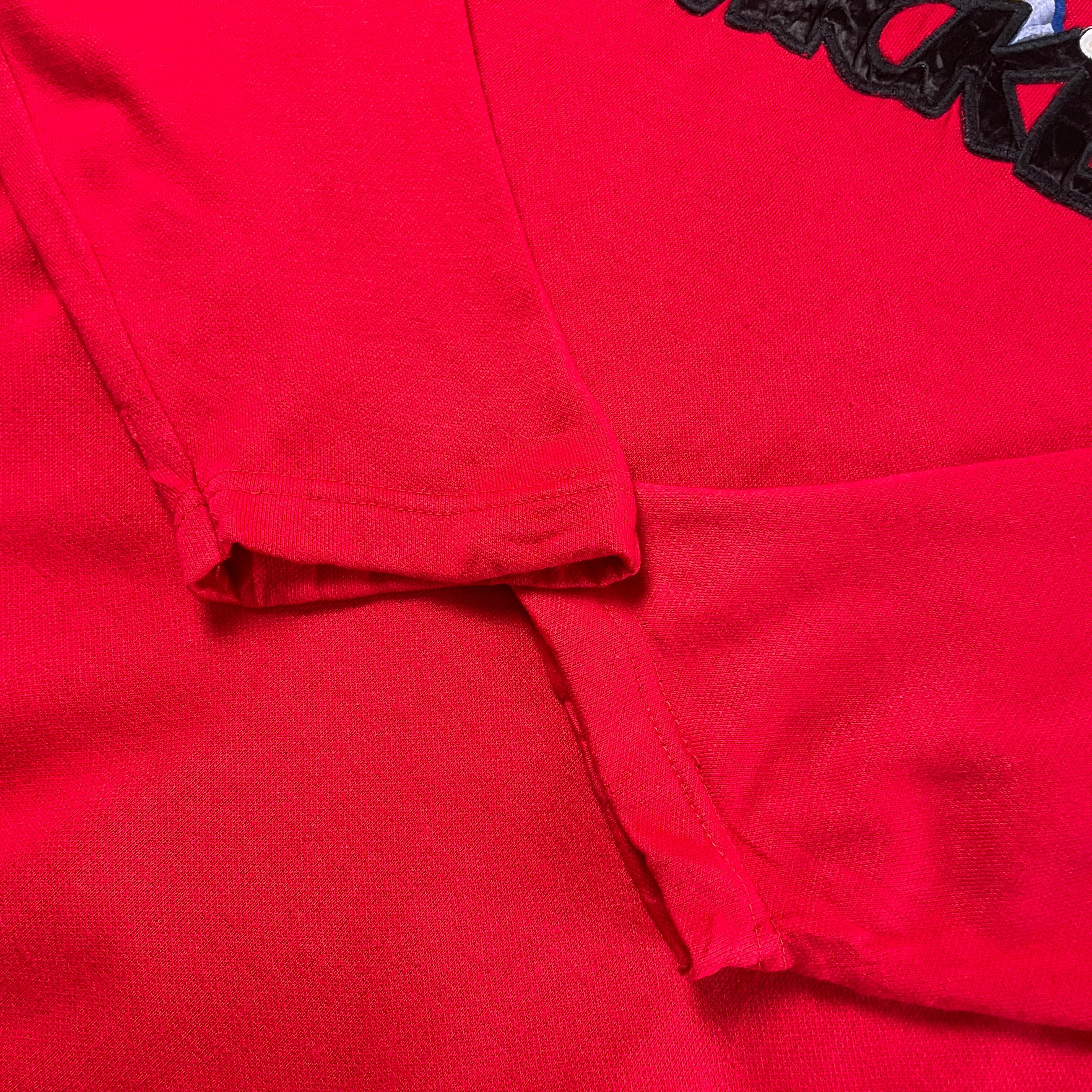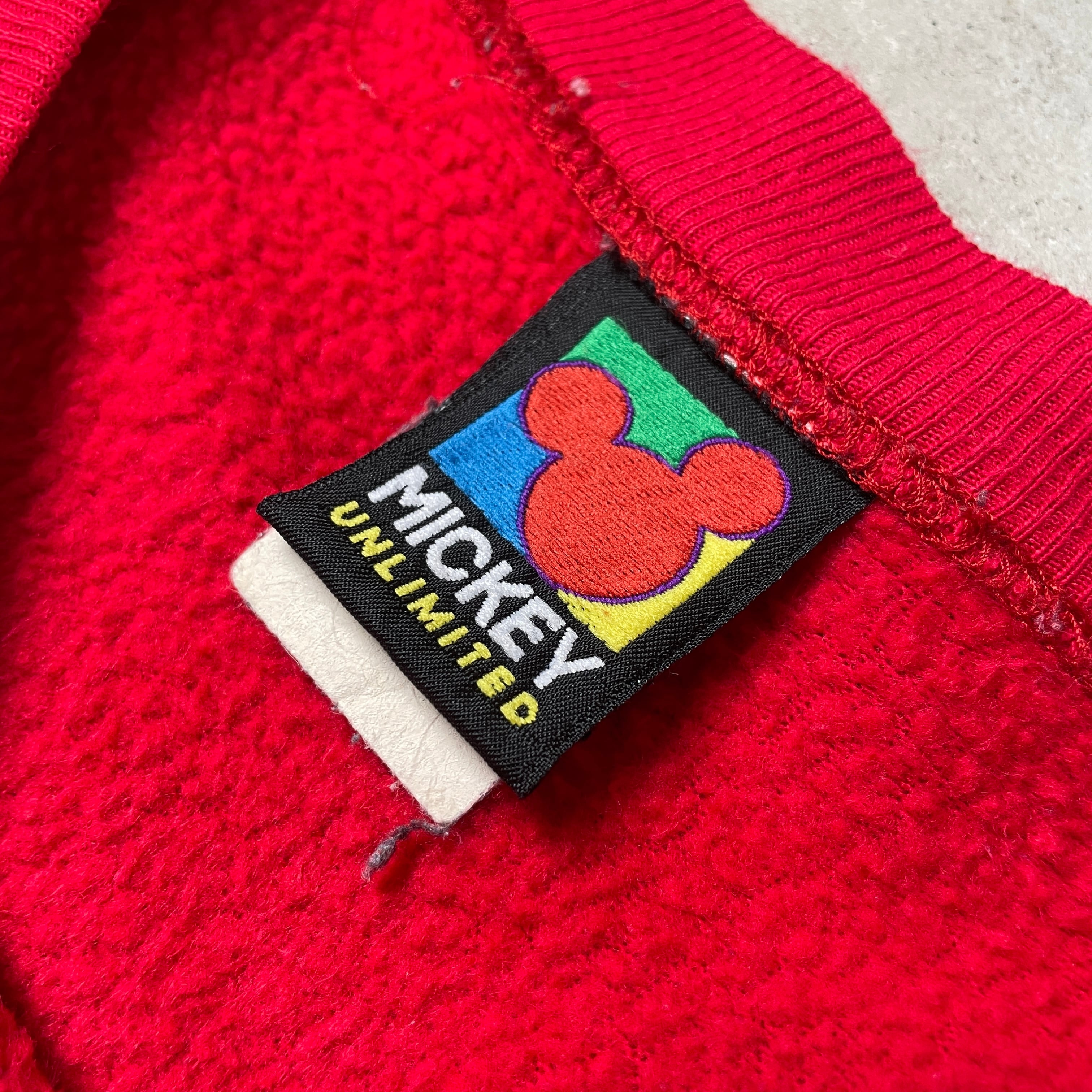 90年代 ディズニー ミッキーマウス スウェットシャツ キャラクター 刺繍 ワッペン メンズXXL相当 古着 90s ビンテージ ヴィンテージ MICKEY UNLIMITED トレーナー レッド 赤【スウェット】