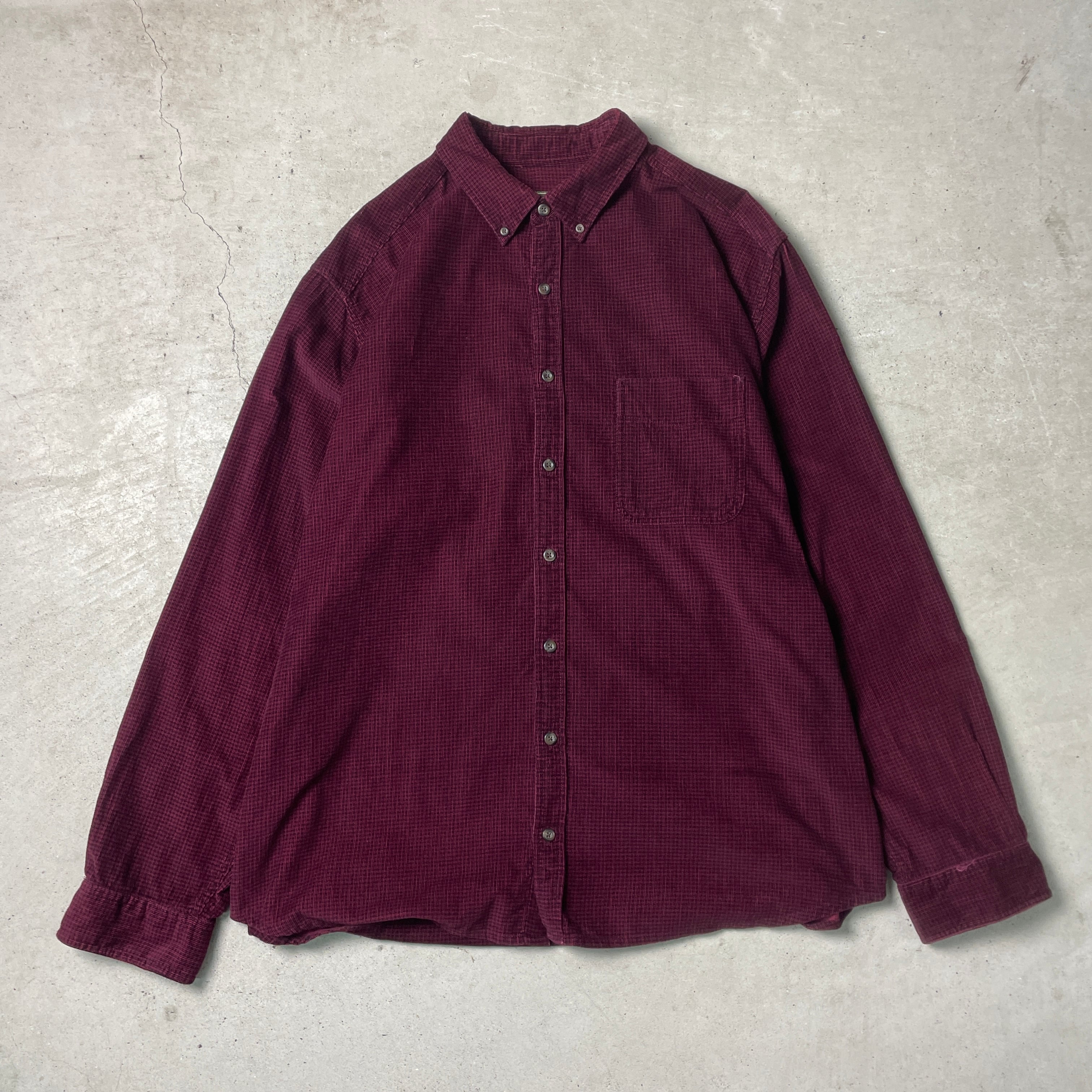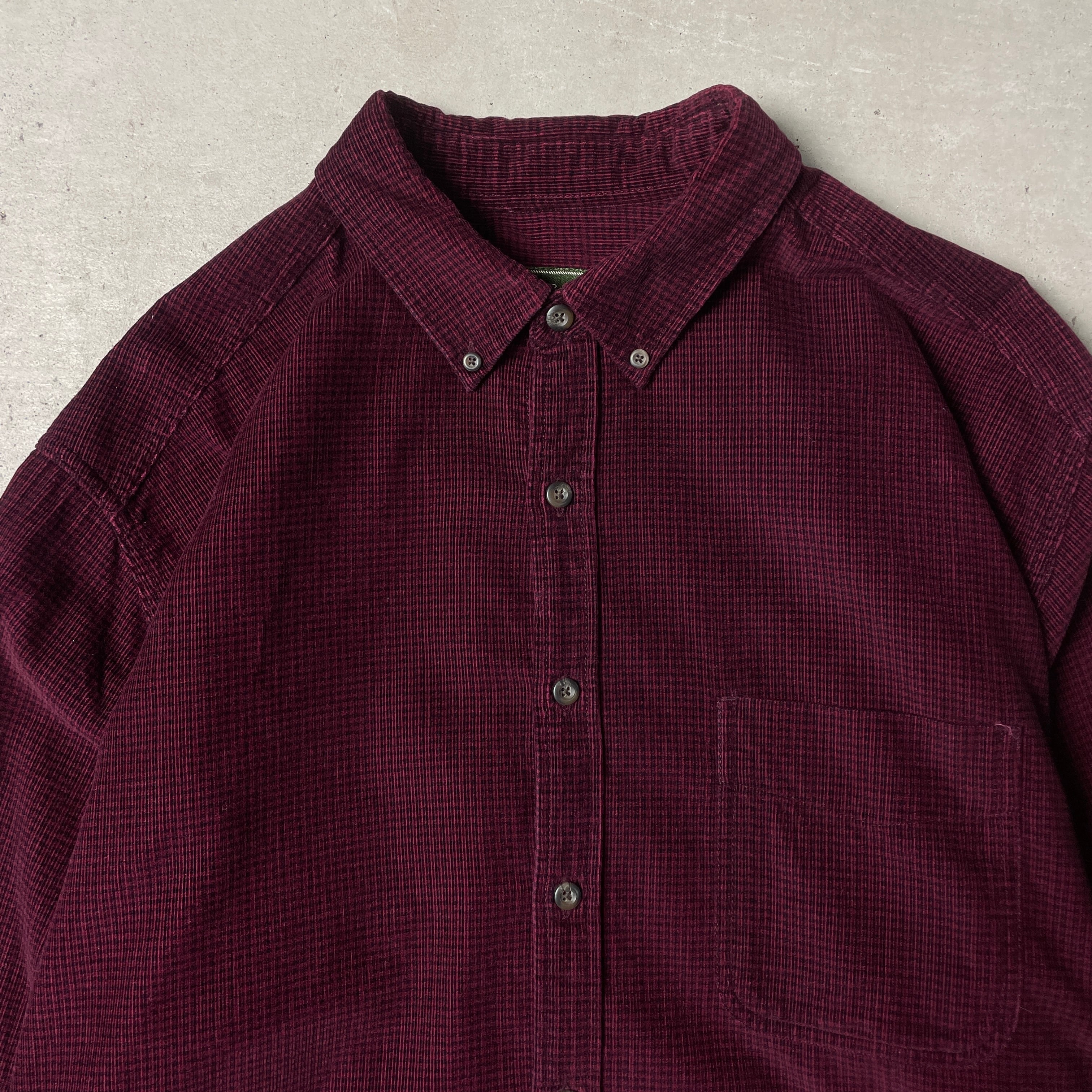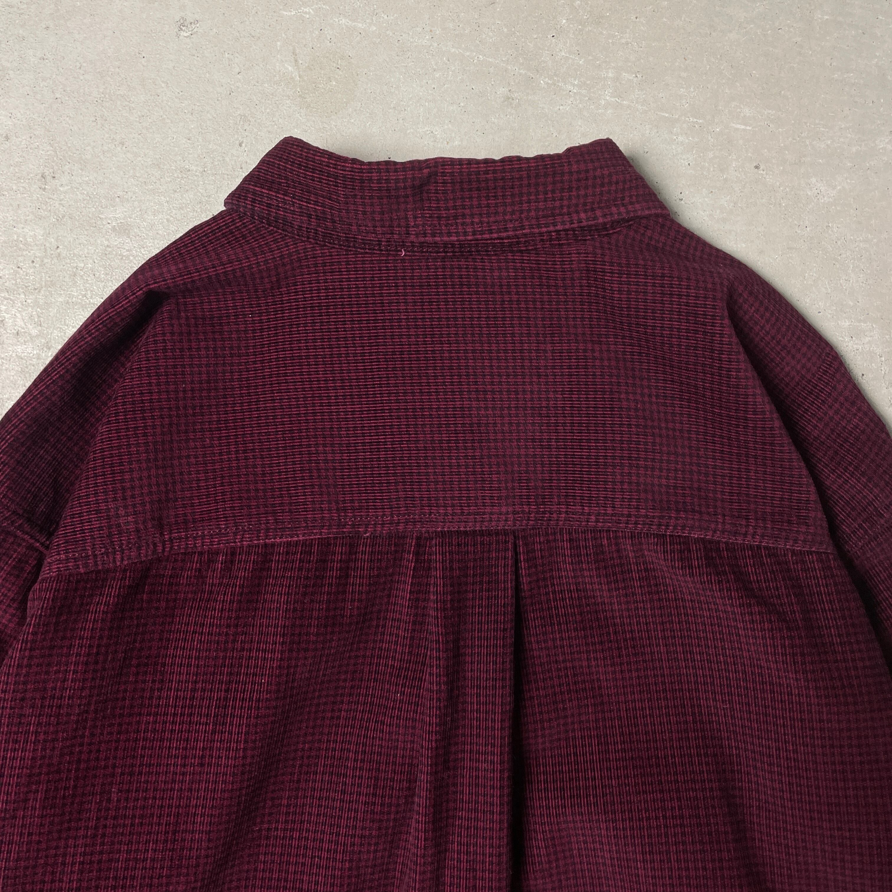 00年代 Eddie Bauer エディーバウアー コーデュロイシャツ 千鳥格子 ボタンダウン メンズXL相当 古着 00s ヴィンテージ VINTAGE ワインレッド えんじ ブラック 黒【長袖シャツ】/ワインレッド
