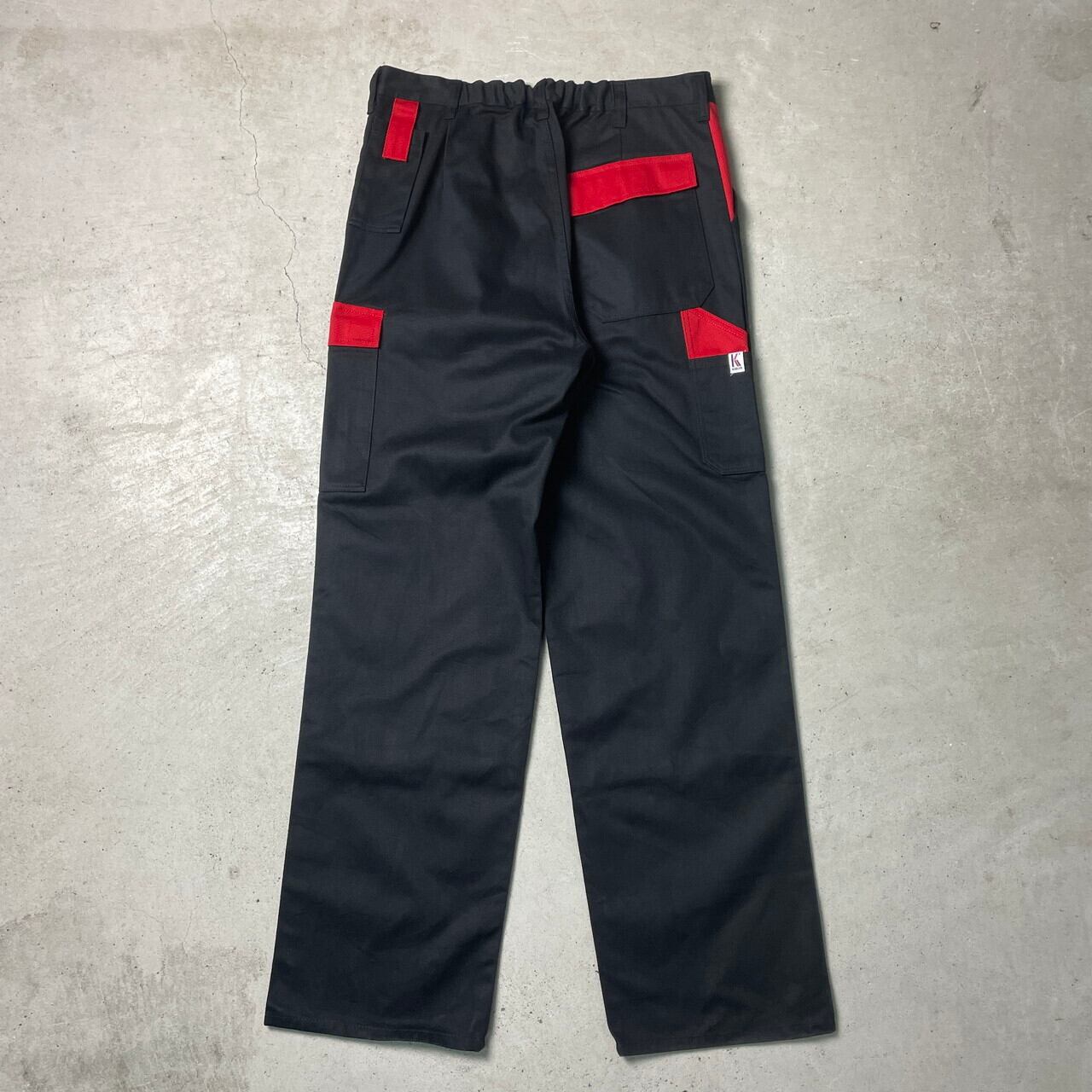 ■KUBLER ジャーマンワークパンツ クレイジーパターン 1タック ダブルニー ワイドカーゴパンツ メンズW34 古着 ドイツ ユーロワークパンツ 黒 レッド 赤色【ロングパンツ】/ブラック