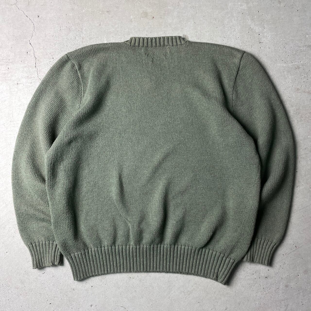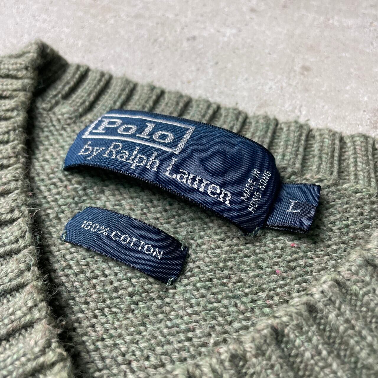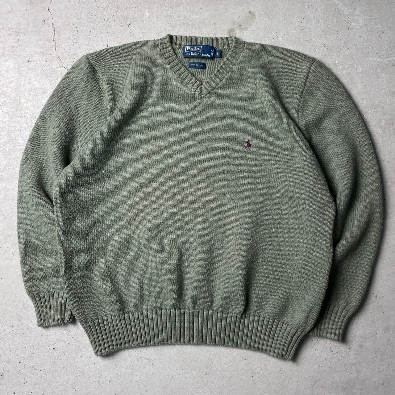 ■Polo by Ralph Lauren ポロバイラルフローレン Vネック コットンニットセーター メンズM相当 古着 オールドラルフローレン カーキグリーン 緑色【ニットセーター】/カーキグリーン