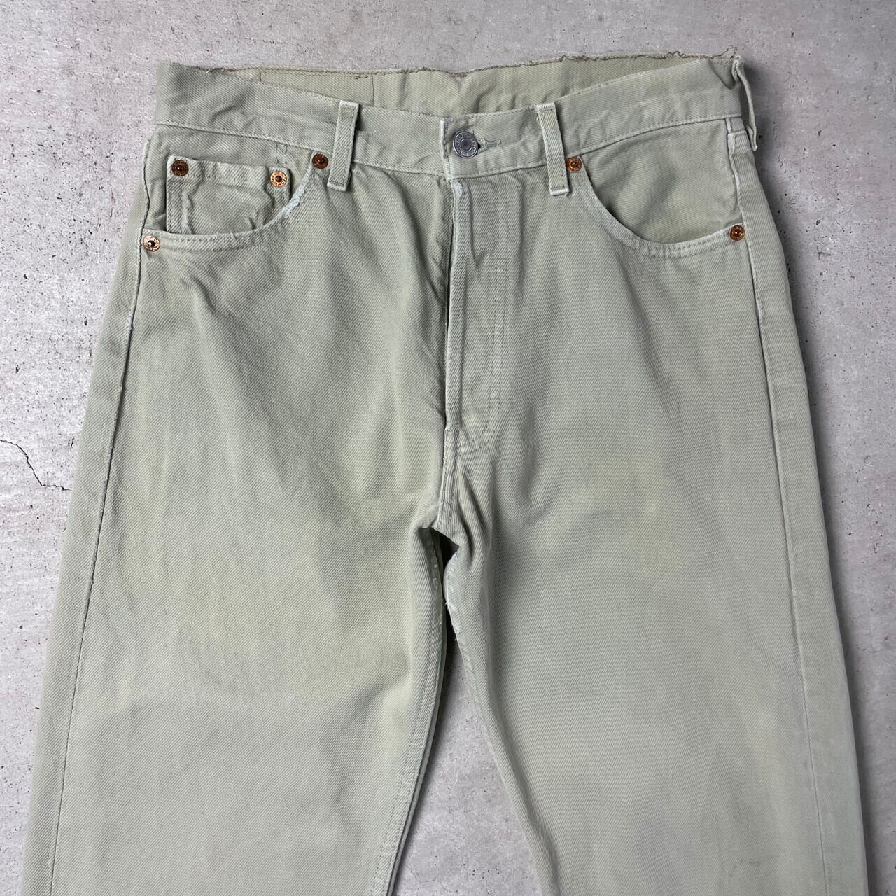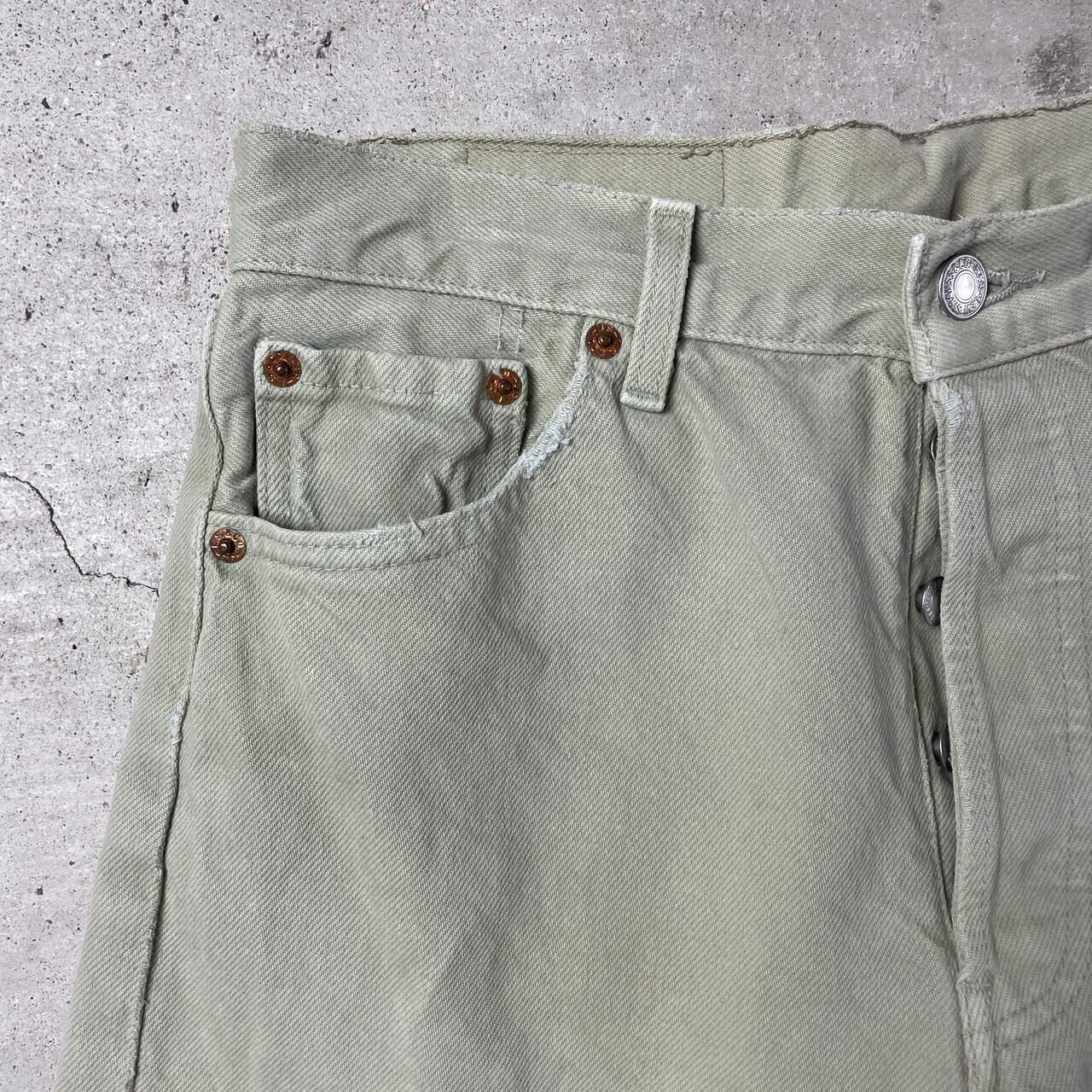 ■90年代 フランス製 Levi's ユーロリーバイス 501 カラーデニムパンツ ストレート メンズW30 古着 90s ヨーロッパ企画 ヴィンテージ VINTAGE ライトグリーン 薄緑色【デニムパンツ】/グリーン