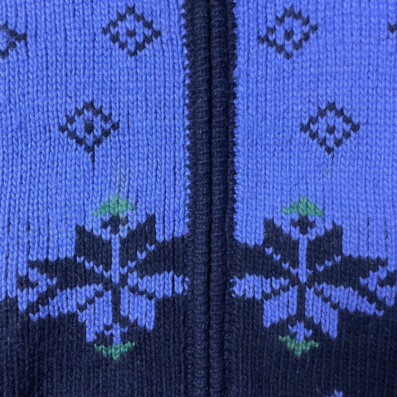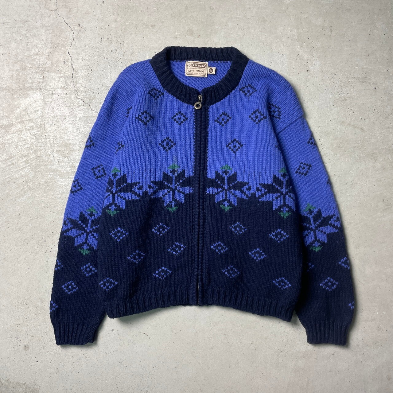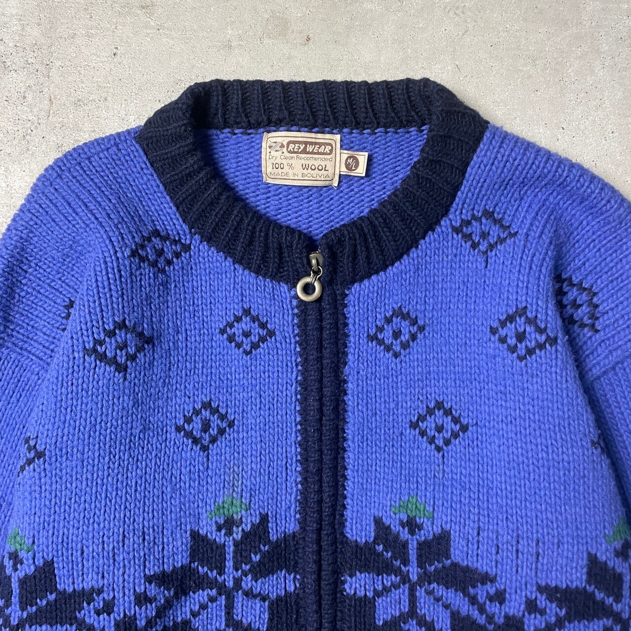 90年代 REY WEAR カウチンニットセーター ウールニットセーター メンズM-L相当 古着 90s VINTAGE ヴィンテージ フルジップ ライトブルー ネイビー 水色 紺色 【ニットセーター】/マルチカラー【SS2401-50】