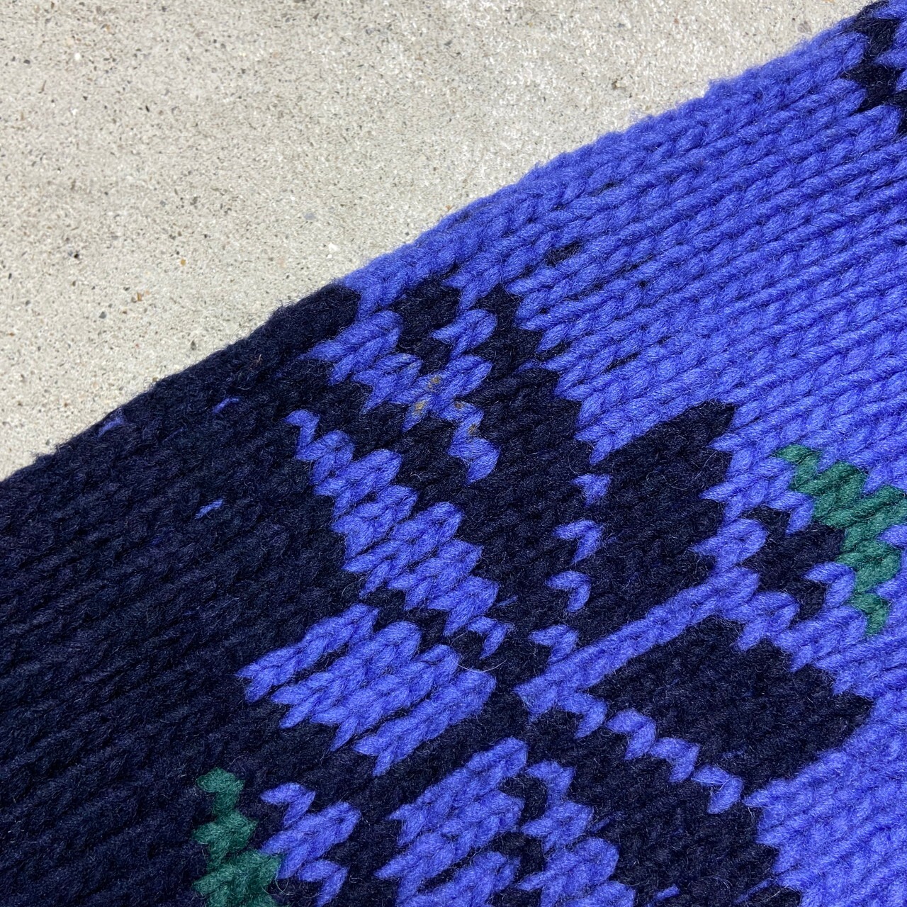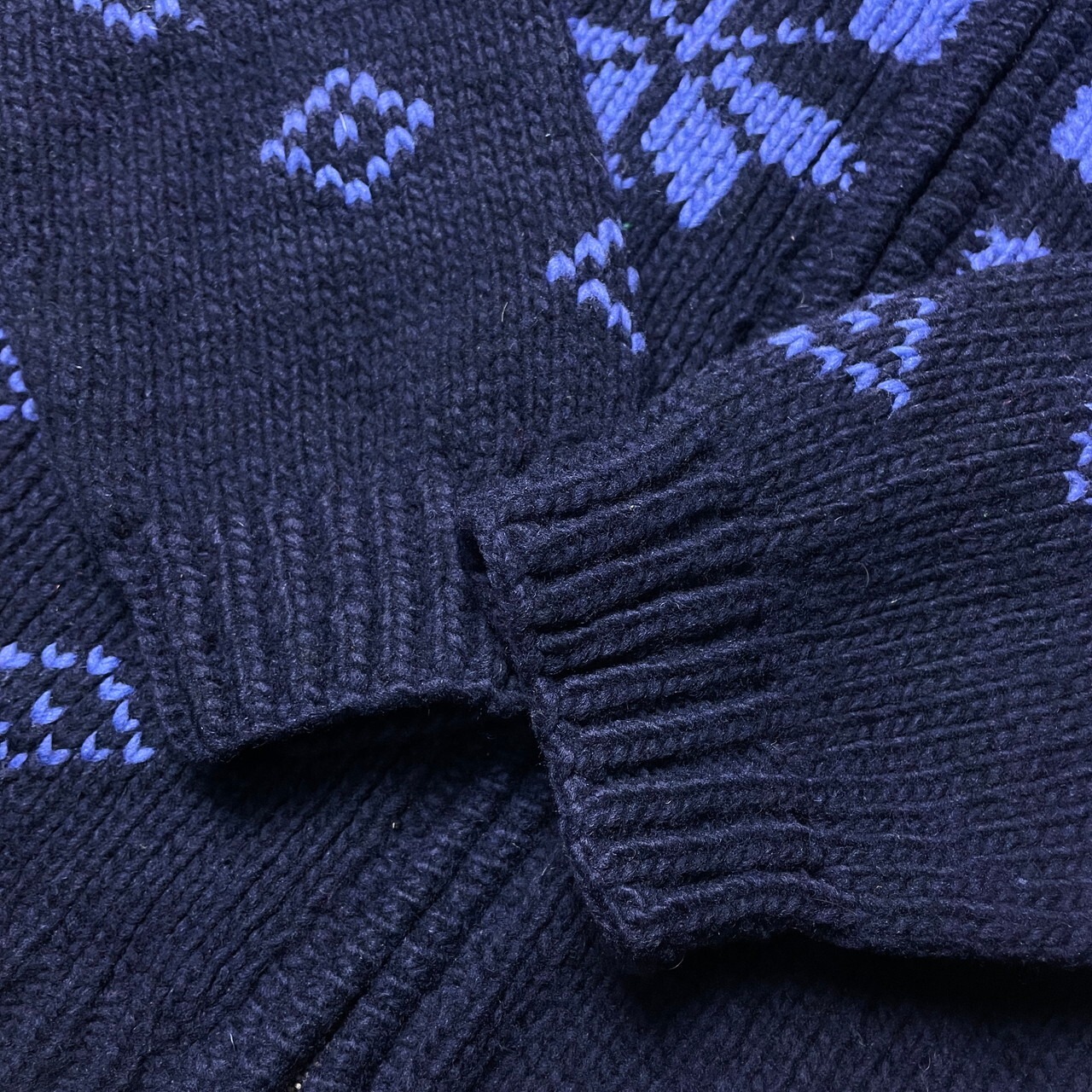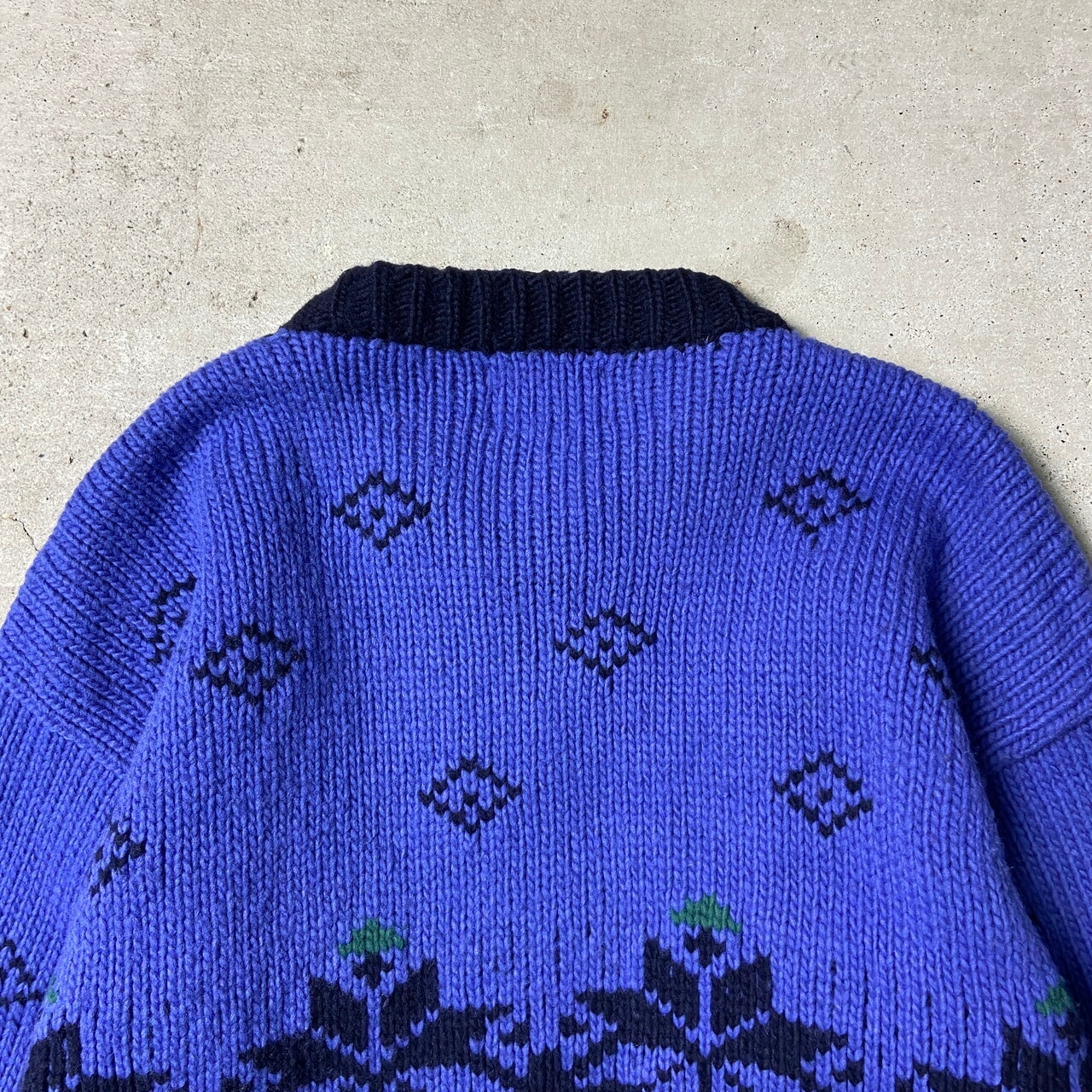 90年代 REY WEAR カウチンニットセーター ウールニットセーター メンズM-L相当 古着 90s VINTAGE ヴィンテージ フルジップ ライトブルー ネイビー 水色 紺色 【ニットセーター】/マルチカラー【SS2401-50】