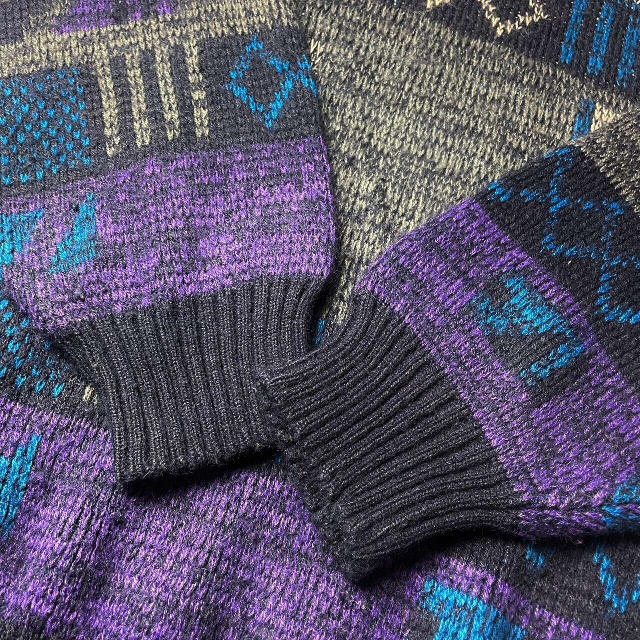 PERMIT 総柄 アクリルニットセーター メンズM 古着 ネイビー パープル ブルー 【ニットセーター】/マルチカラー