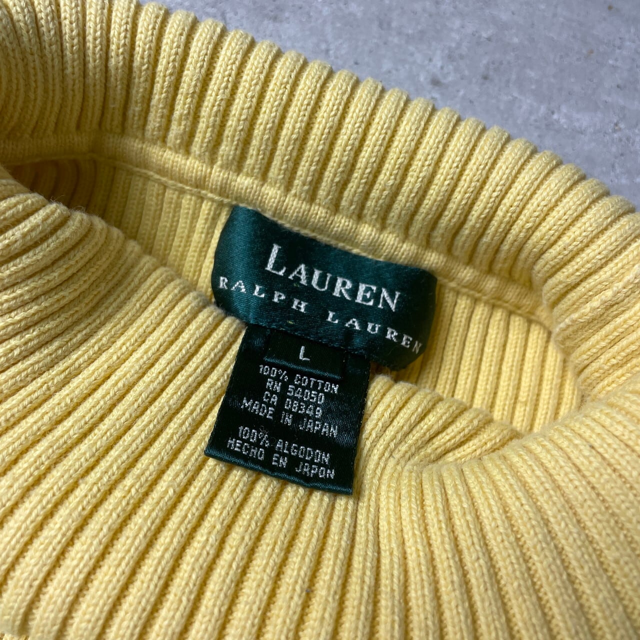 LAUREN RALRH LAUREN ローレンラルフローレン コットンニットセーター タートルネック レディースM相当 古着 ハイネック ワンポイントロゴ刺繍 黄色【ニットセーター】/イエロー