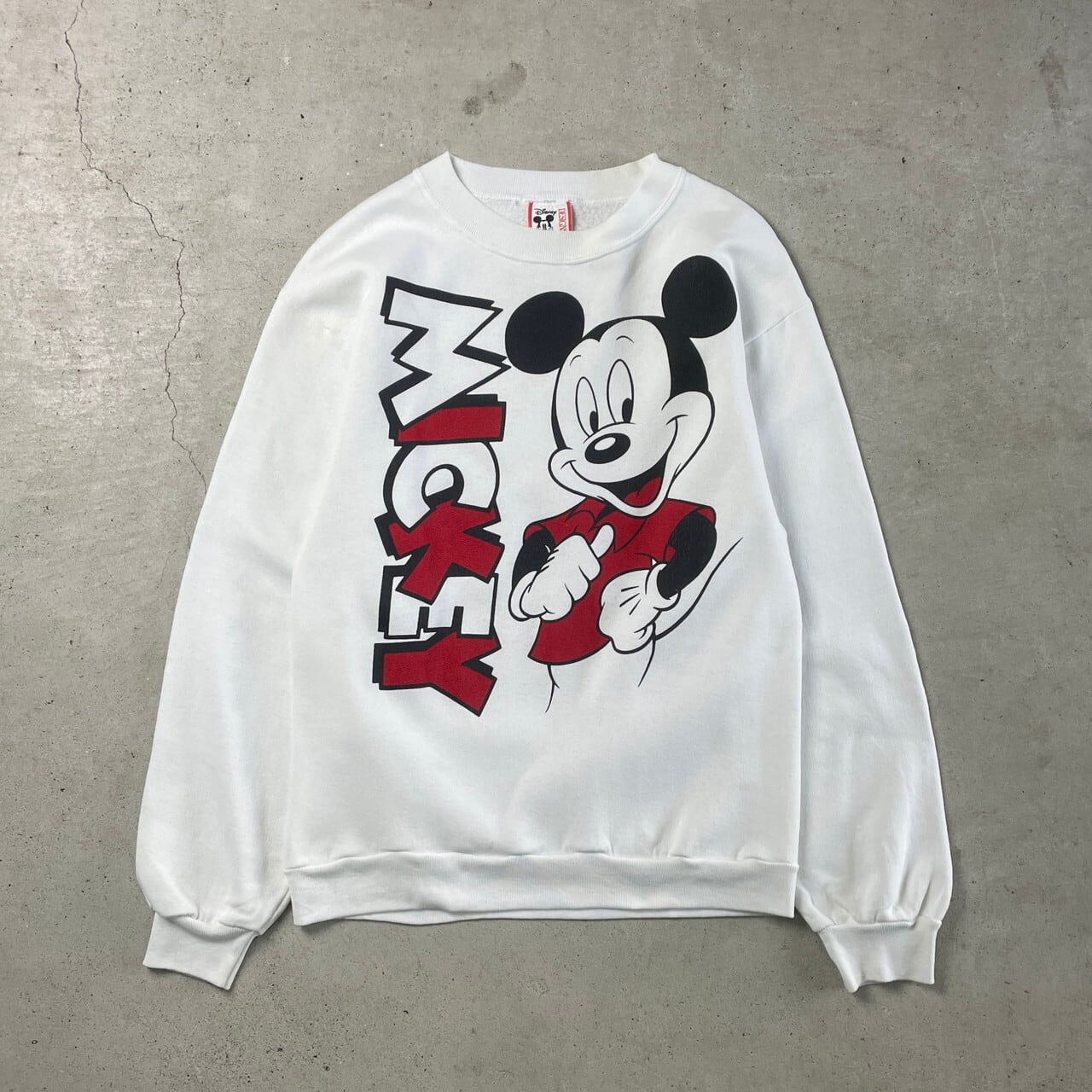 90年代 USA製 Disney ミッキーマウス スウェットシャツ 両面プリント メンズM 古着 90s ディズニー MICKEY MOUSE ヴィンテージ VINTAGE トレーナー ホワイト 白【スウェット】/ホワイト