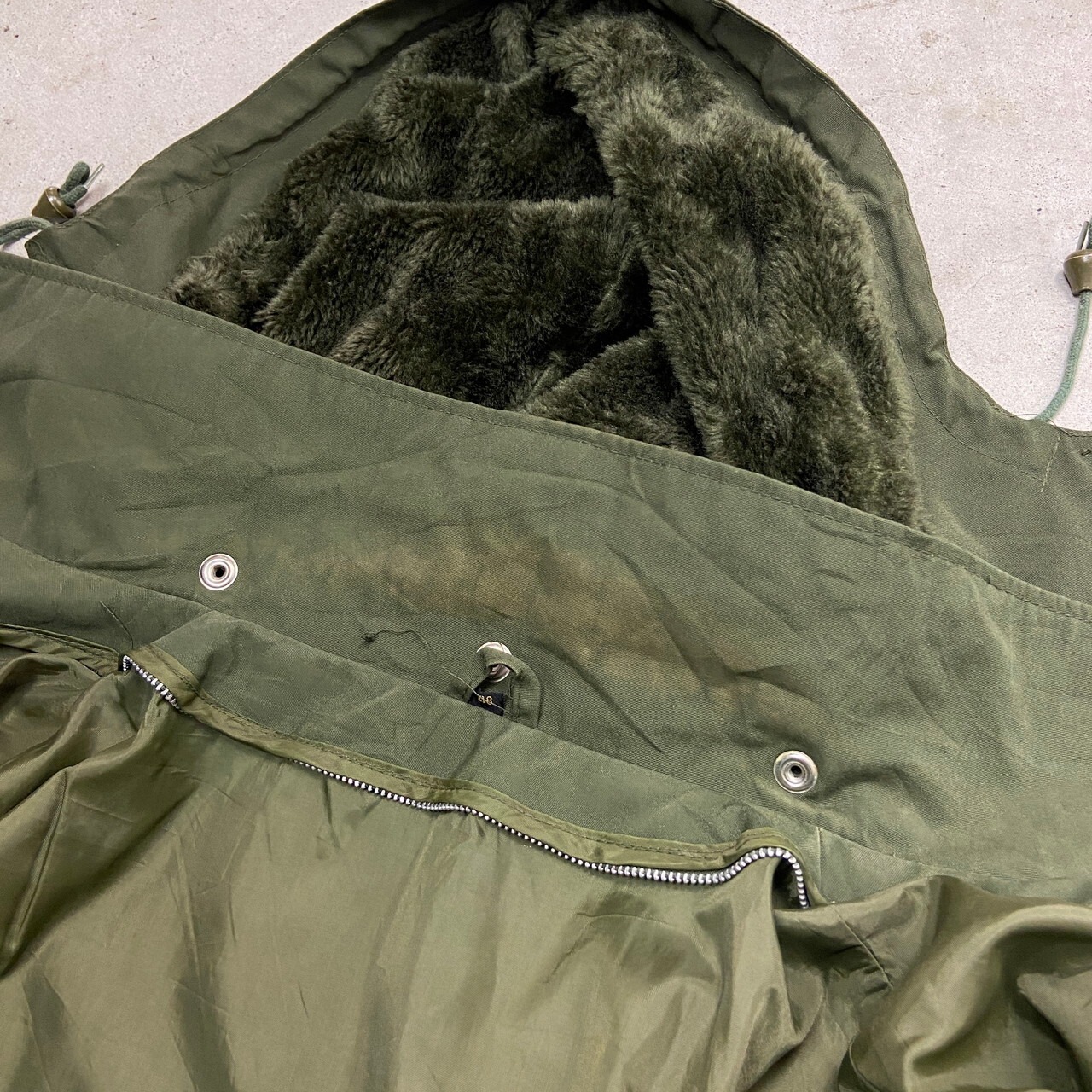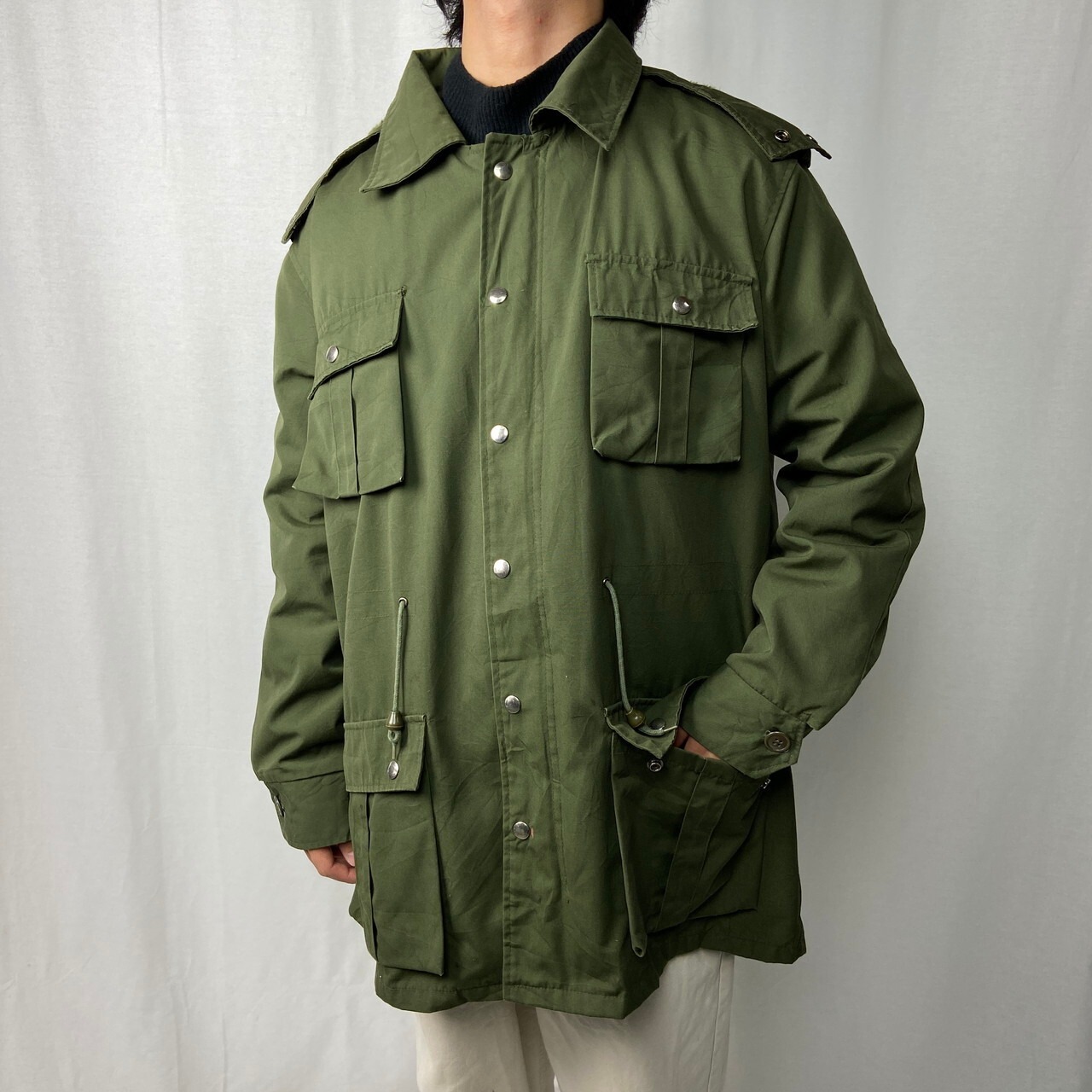 ヴィンテージ ユーロ 民間品 モッズパーカー ミリタリージャケット メンズXL相当 ヨーロッパ古着 フード着脱式 VINTAGE オリーブグリーン 緑色【コットンジャケット】/カーキグリーン