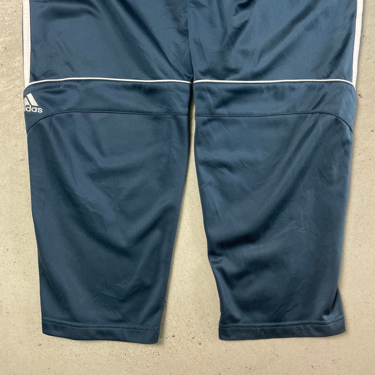 90年代 adidas アディダス トラックパンツ ジャージパンツ パフォーマンスロゴ メンズXL相当 古着 90s ヴィンテージ VINTAGE ワンポイントロゴ 刺繍 サイドライン ラインパンツ ライトネイビー 紺色 【ロングパンツ】/ネイビー【SA2501-30】【WS2501-30】