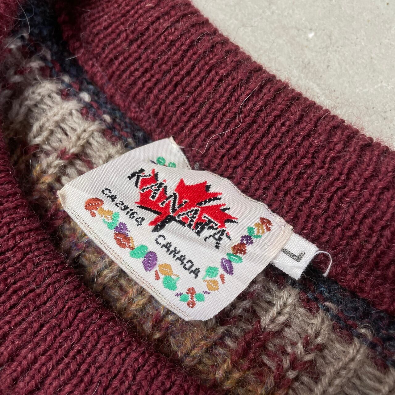 英国製 KANATA ウールニットセーター 総柄 メンズXL相当 古着 ヴィンテージ VINTAGE ワインレッド ボルドー 【ニットセーター】/ワインレッド
