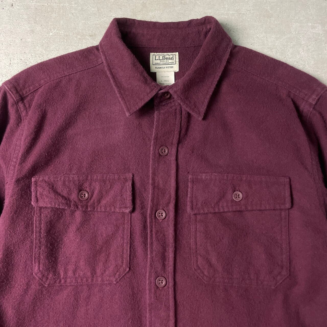 L.L.Bean エルエルビーン シャモアクロスシャツ メンズL 古着 アウトドア ワインレッド えんじ 【長袖シャツ】/レッド