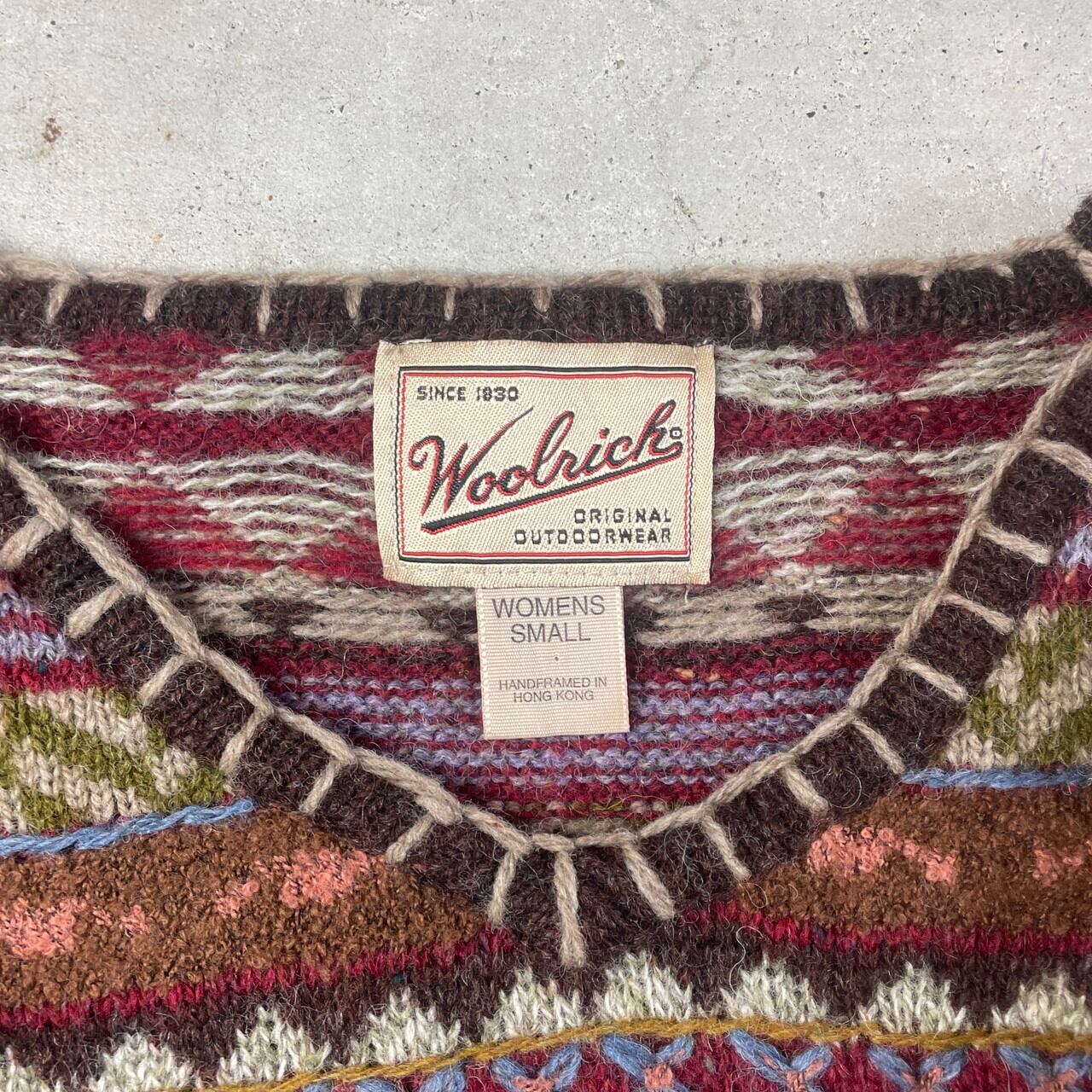 90年代 Woolrich ウールリッチ ウールニットセーター ハンドフレーム Vネック 総柄 レディースS 古着 90s ヴィンテージ VINTAGE【ニットセーター】/マルチカラー