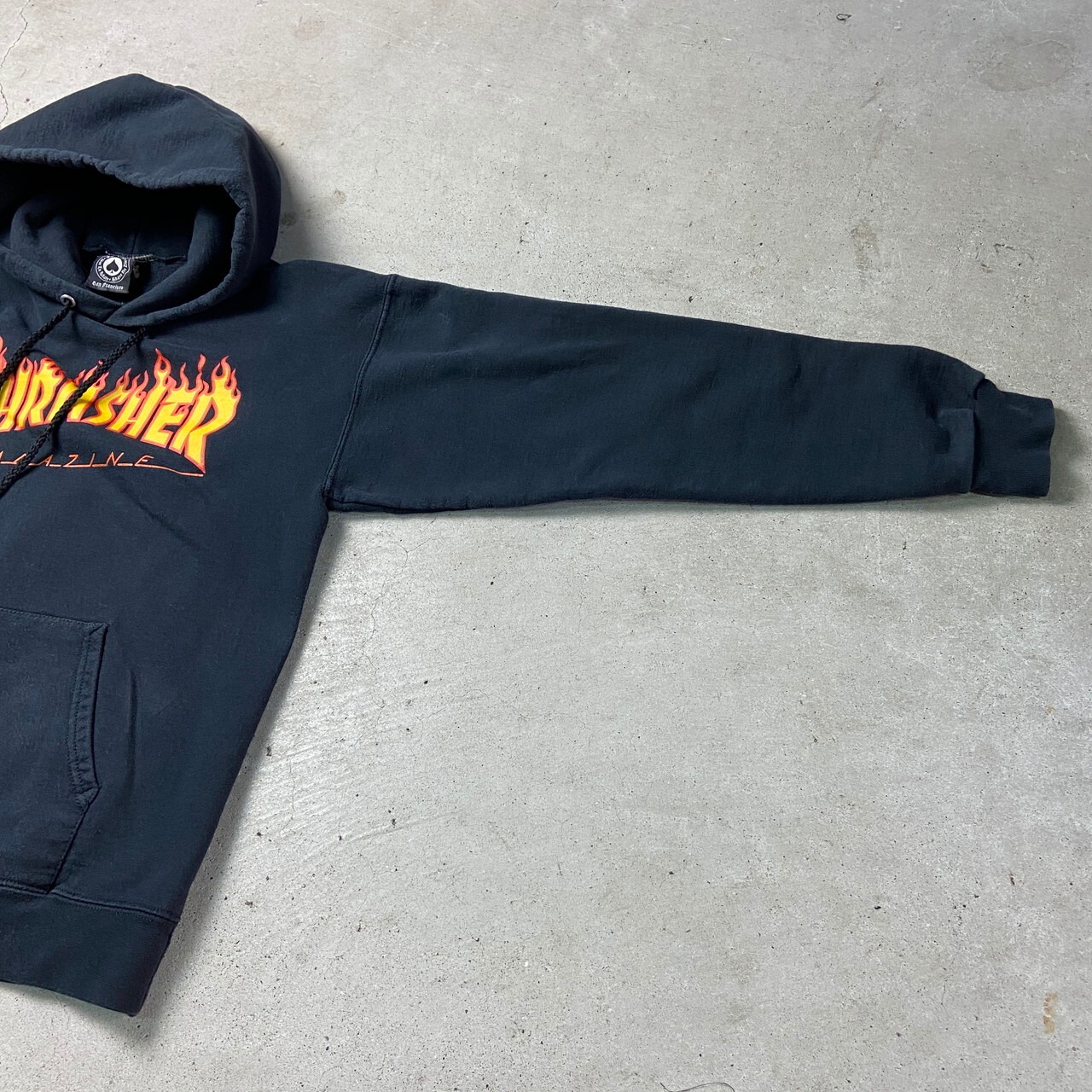 THRASHER FLAME LOGO スラッシャー フレイム スウェットパーカー メンズM レディースL 古着 ブラック 黒 トレーナー【スウェットシャツ】/ブラック
