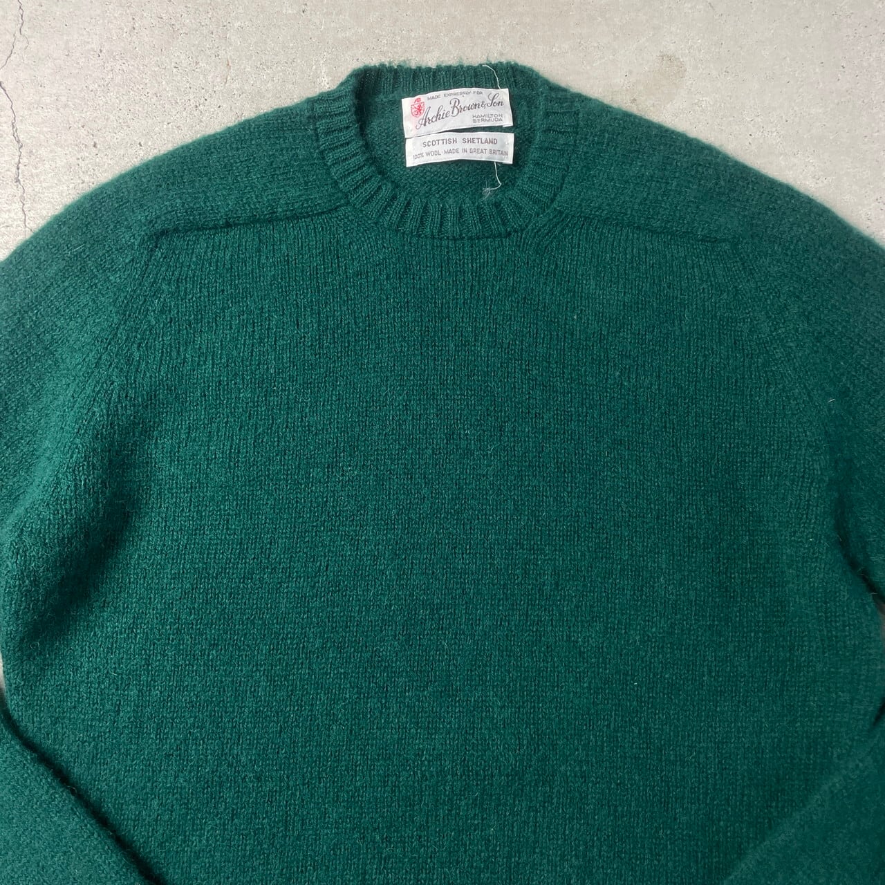 ■60~70年代 英国製 Archie Brown & Son シェットランドセーター ウールニットセーター メンズS相当 レディース 古着 60s 70s ヴィンテージ VINTAGE グリーン 緑色【ニットセーター】/グリーン