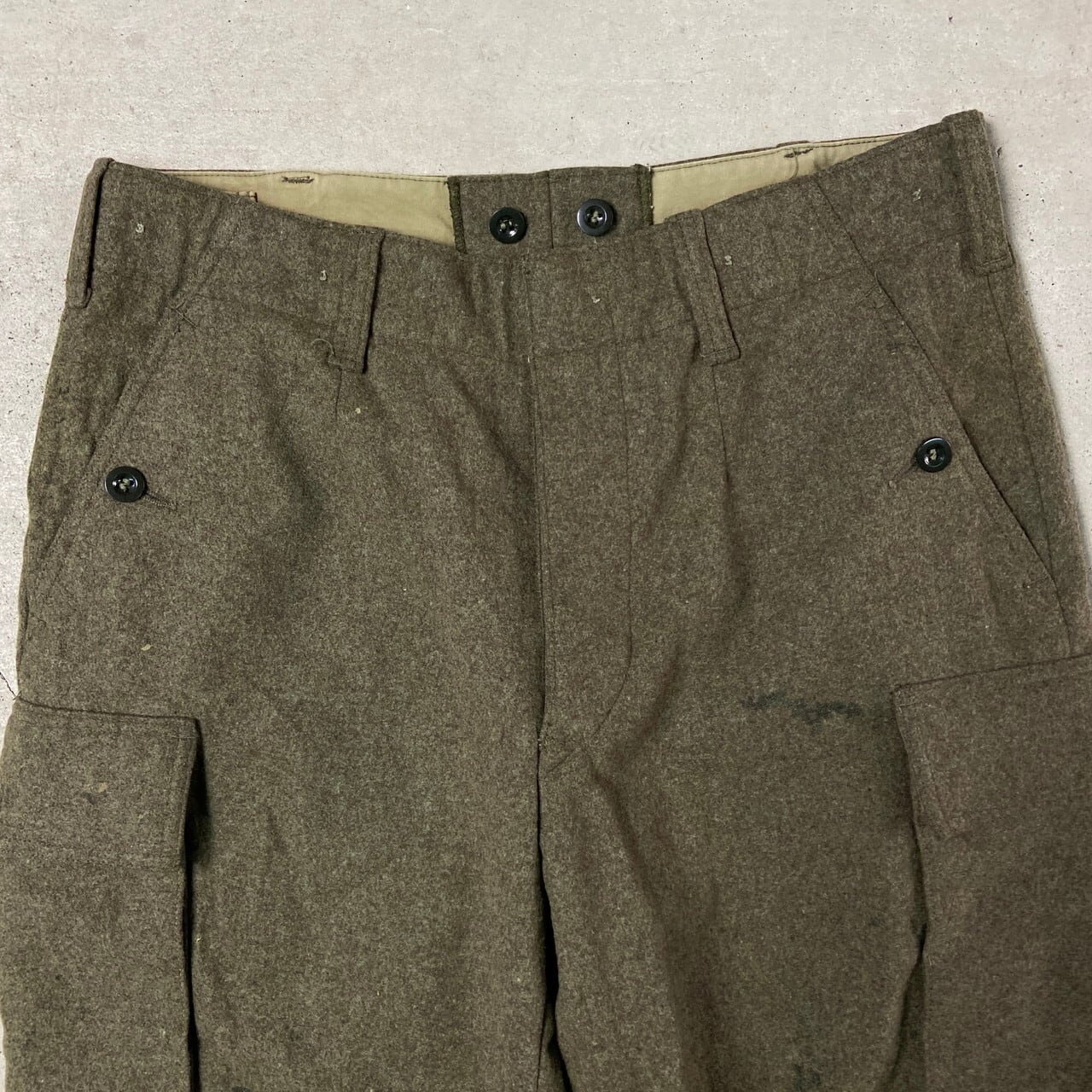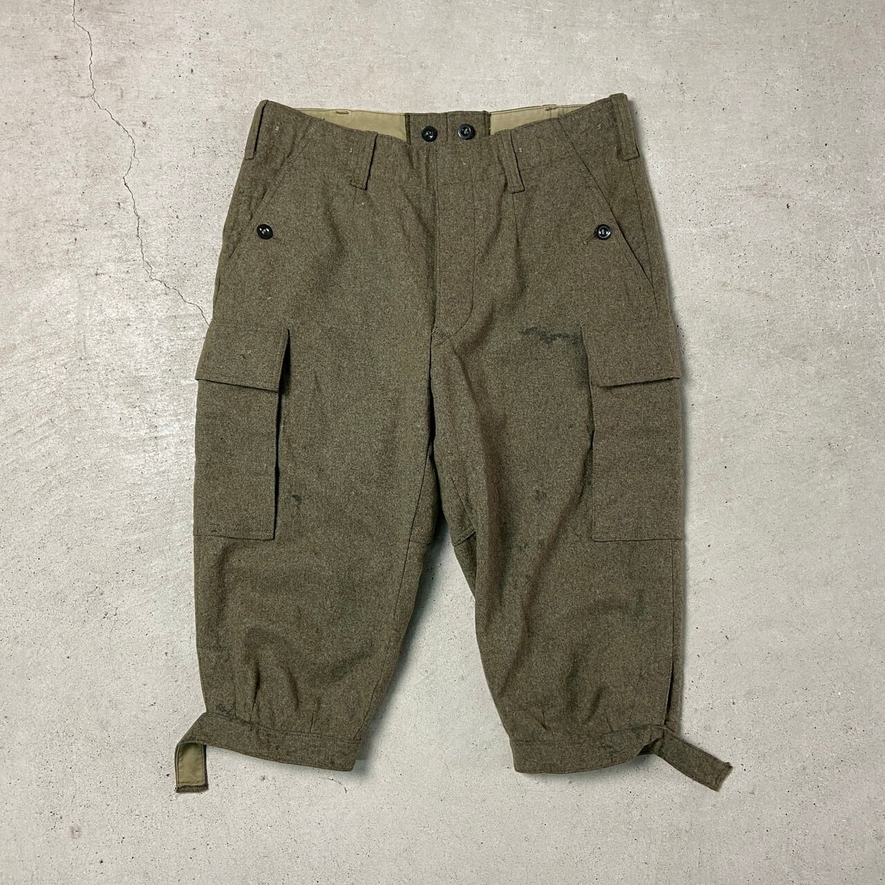 ■70年代 ドイツ軍 ヘビーウール クロップド カーゴパンツ メンズW33相当 古着 70s ヴィンテージ VINTAGE ユーロミリタリーパンツ グリーン【ミリタリーパンツ】/カーキグリーン