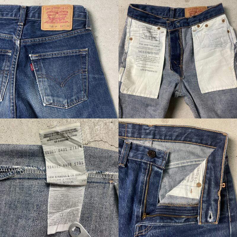 90年代 スペイン製 Levi's リーバイス 505 04 デニムパンツ クロップド丈 レディースW27 古着 90s ヴィンテージ ビンテージ ユーロリーバイス テーパード ストレート 濃色【デニムパンツ】/ブルー