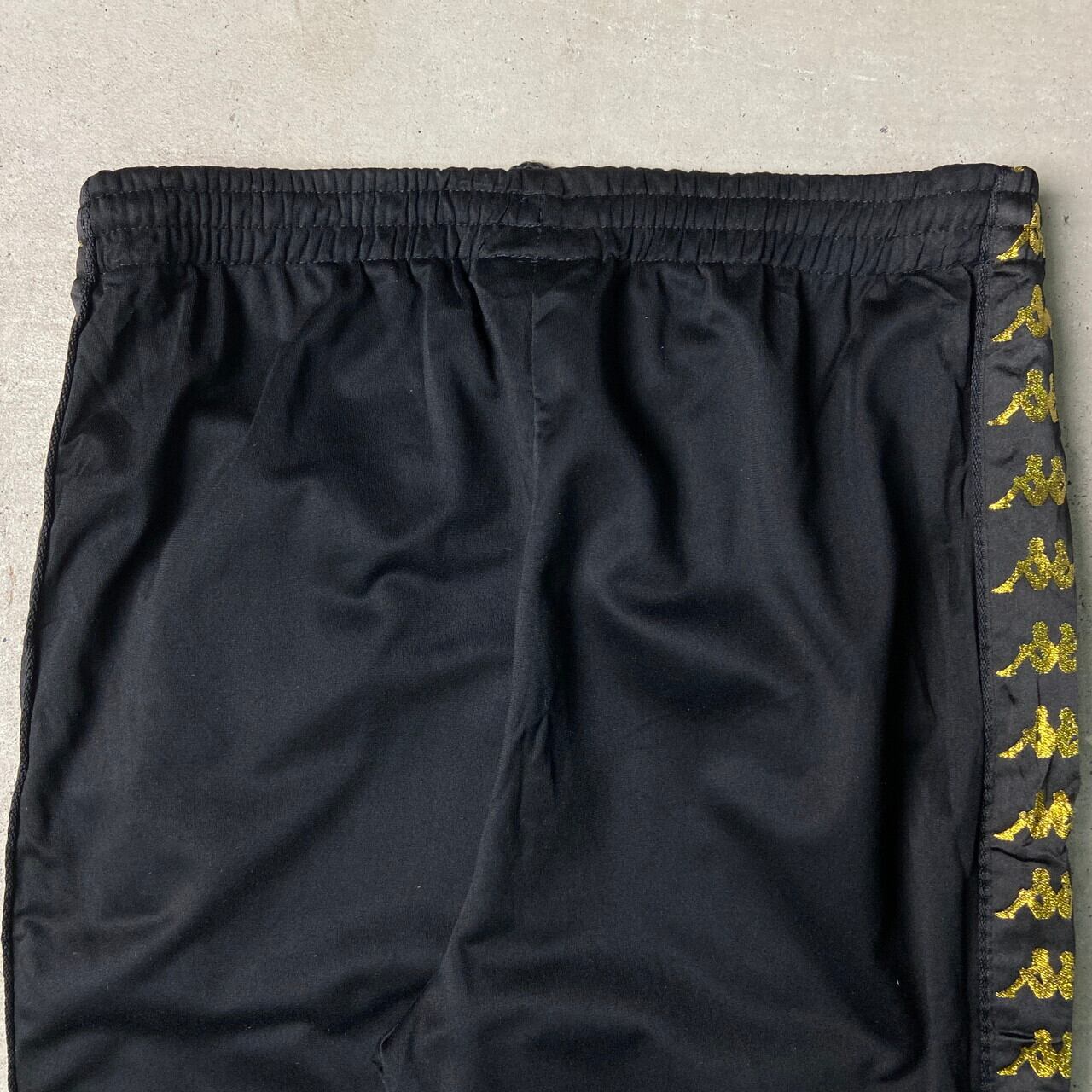 Kappa カッパ サイドライン ジャージ トラックパンツ メンズM-L相当 古着 ワッペン メッシュライナー ヴィンテージ VINTAGE ブラック ゴールド 黒色 金色【ロングパンツ】/ブラック【BS25-50】