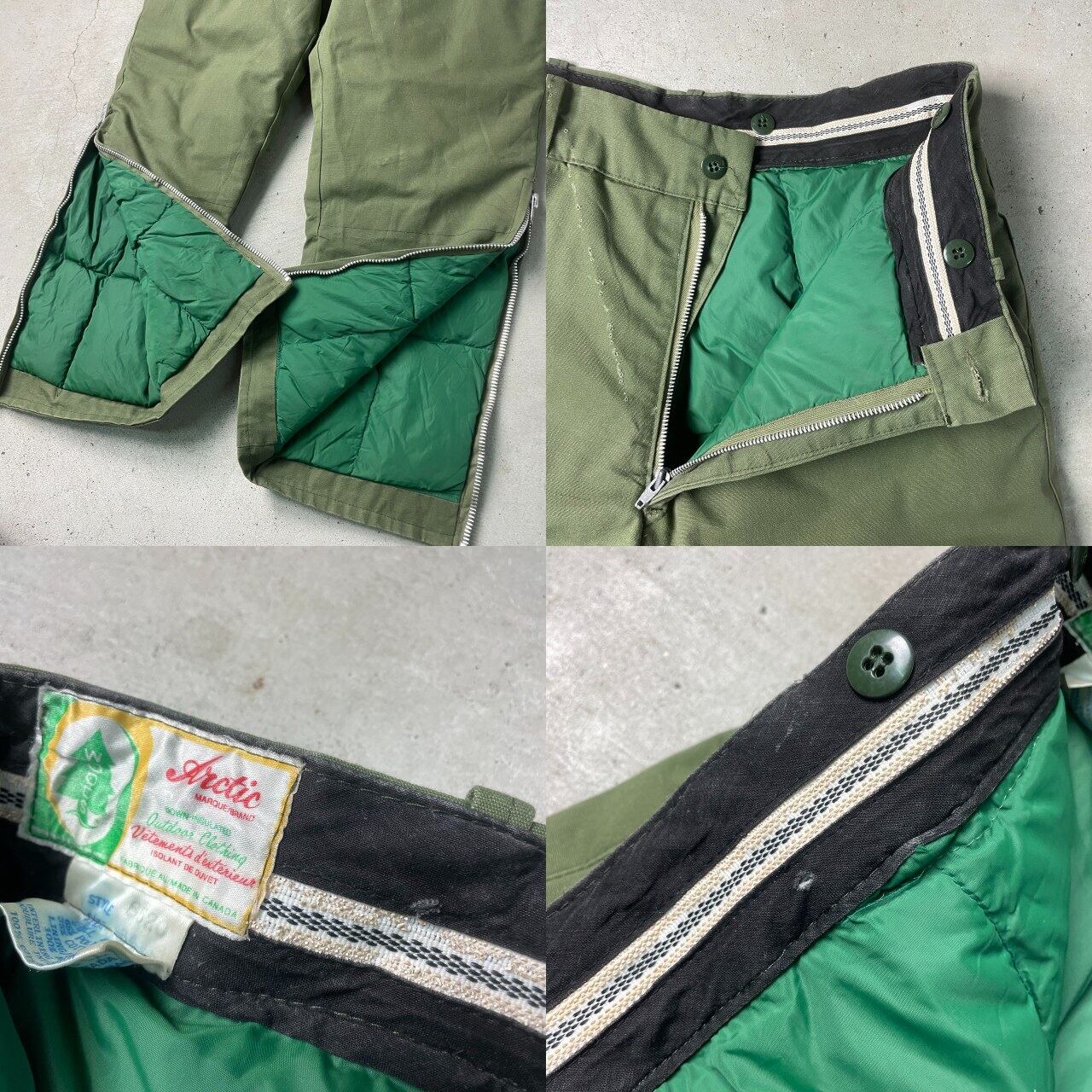 ■80~90年代 カナダ製 WOODS ダウンパンツ メンズW31相当 古着 80s 90s アウトドア キルティングパンツ VINTAGE ヴィンテージ カーキグリーン【ロングパンツ】/カーキグリーン