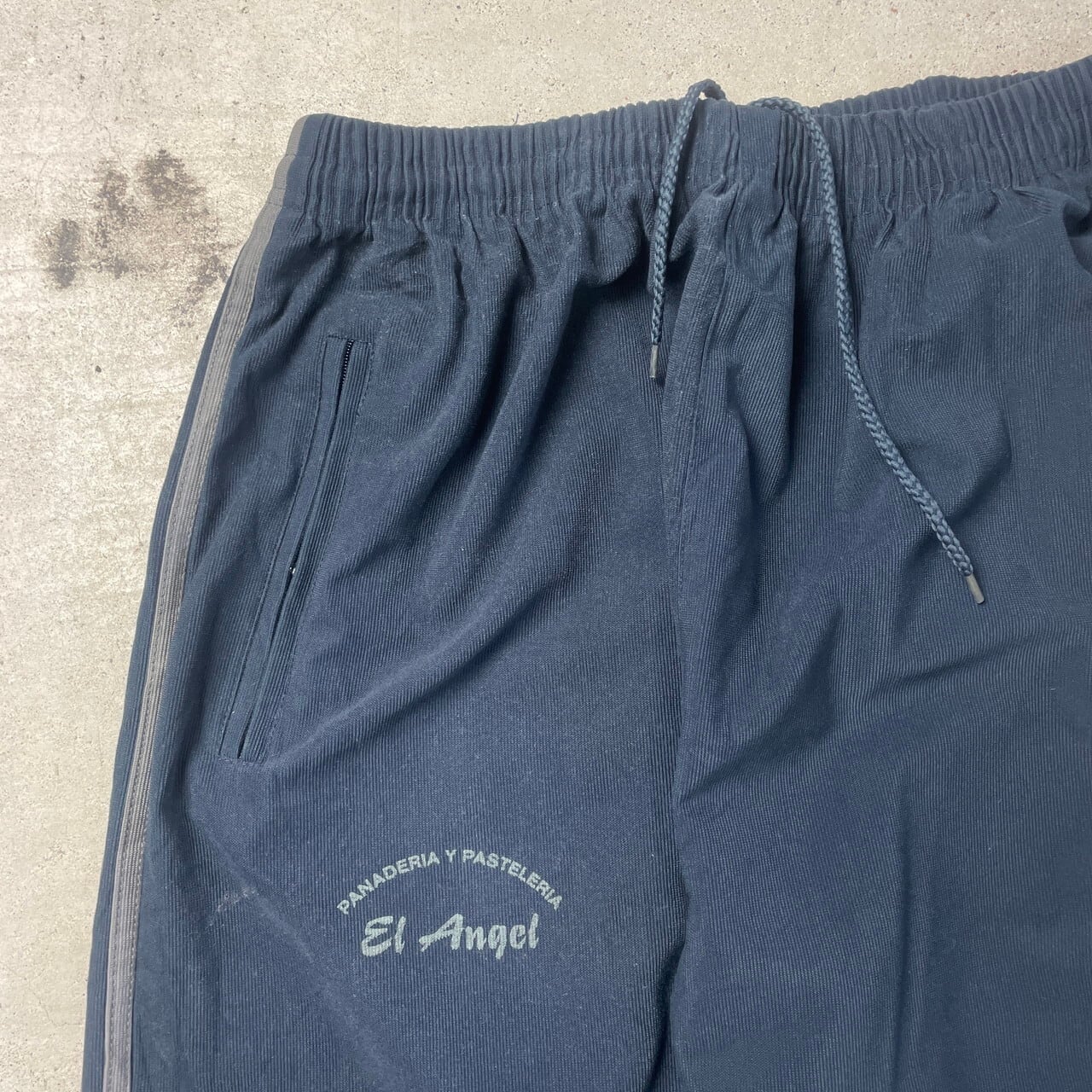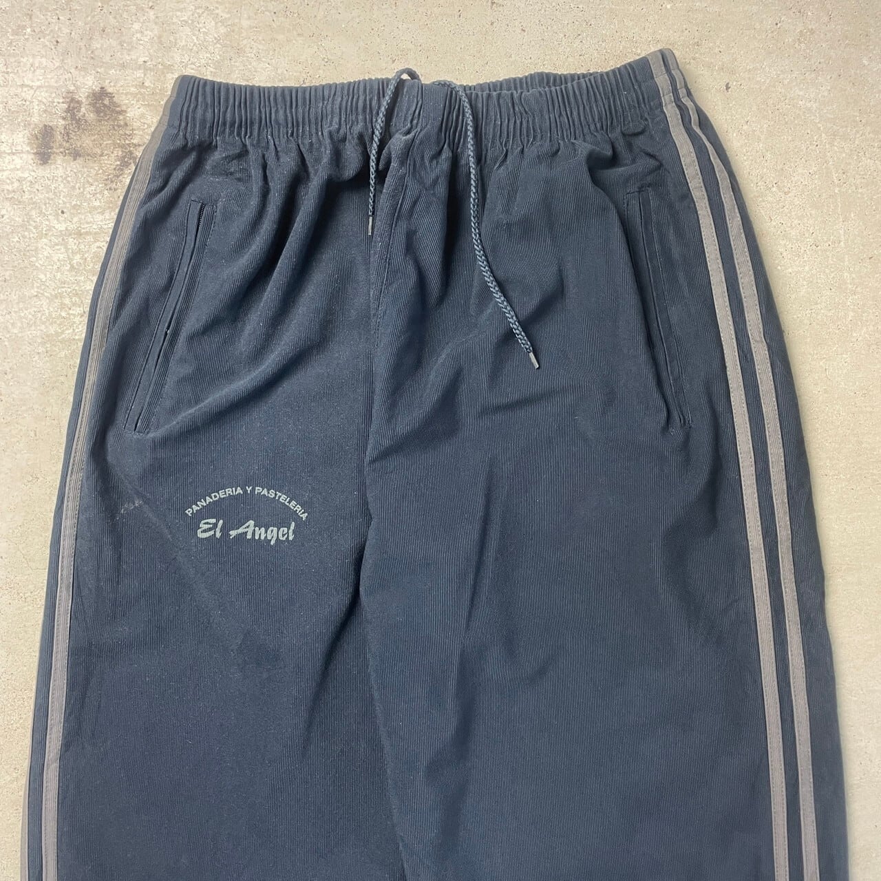 ■OTF ユーロ サイドライン イージーパンツ 企業ロゴプリント メンズL相当 古着 コーデュロイ ワークパンツ サイドジップ ネイビー グレー 【ロングパンツ】/ネイビー