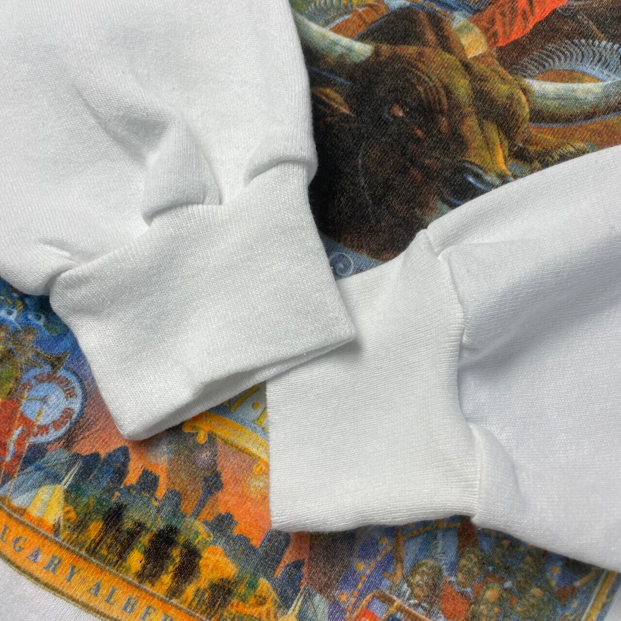 90年代 アニマルプリント スウェットシャツ CALGARY STAMPEDE ロデオ メンズL相当 古着 90s 馬 ヴィンテージ VINTAGE トレーナー ラグランスリーブ ホワイト 白色【スウェット】/ホワイト【WS2501-50】