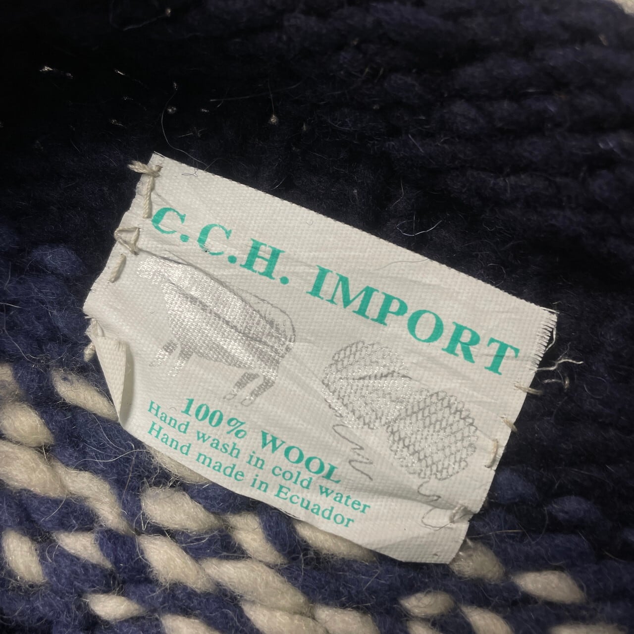 C.C.H.IMPORT エクアドル製 総柄 ウールニットセーター ハンドニット メンズXL相当 古着 ハンドメイド ロールネック ヴィンテージ VINTAGE ネイビー パープル グリーン ボルドー ホワイト 【ニットセーター】/マルチカラー【SA2501-30】