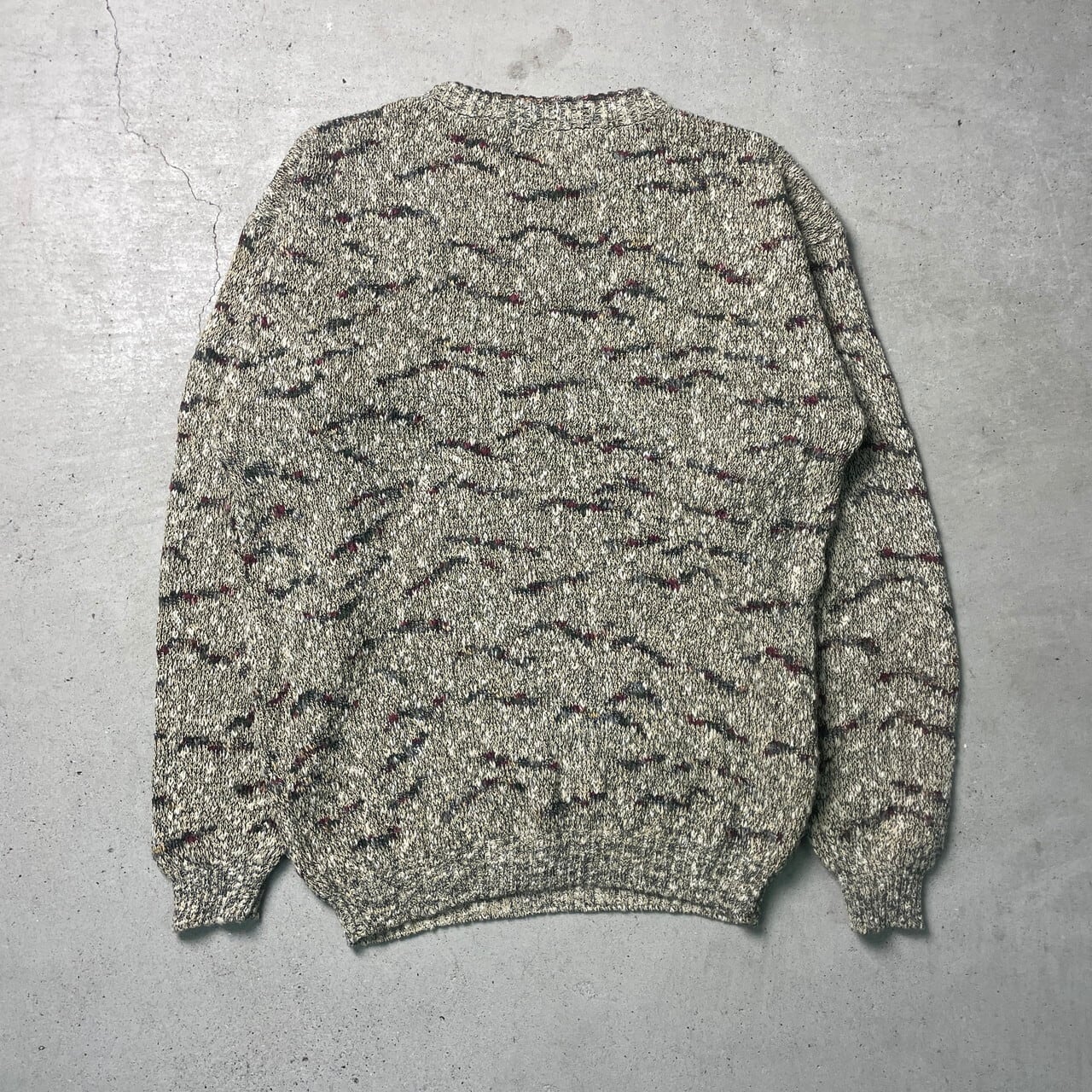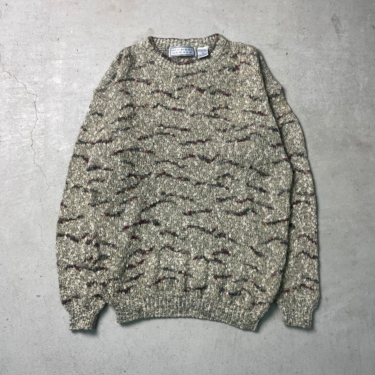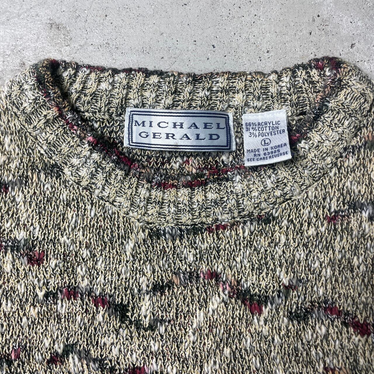 ■MICHAEL GERALD 総柄 アクリルニットセーター メンズL 古着 マルチカラー ベージュ ホワイト 白 レッド 赤 ブラック 黒 【ニットセーター】/マルチカラー