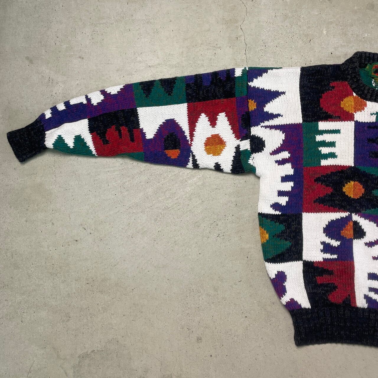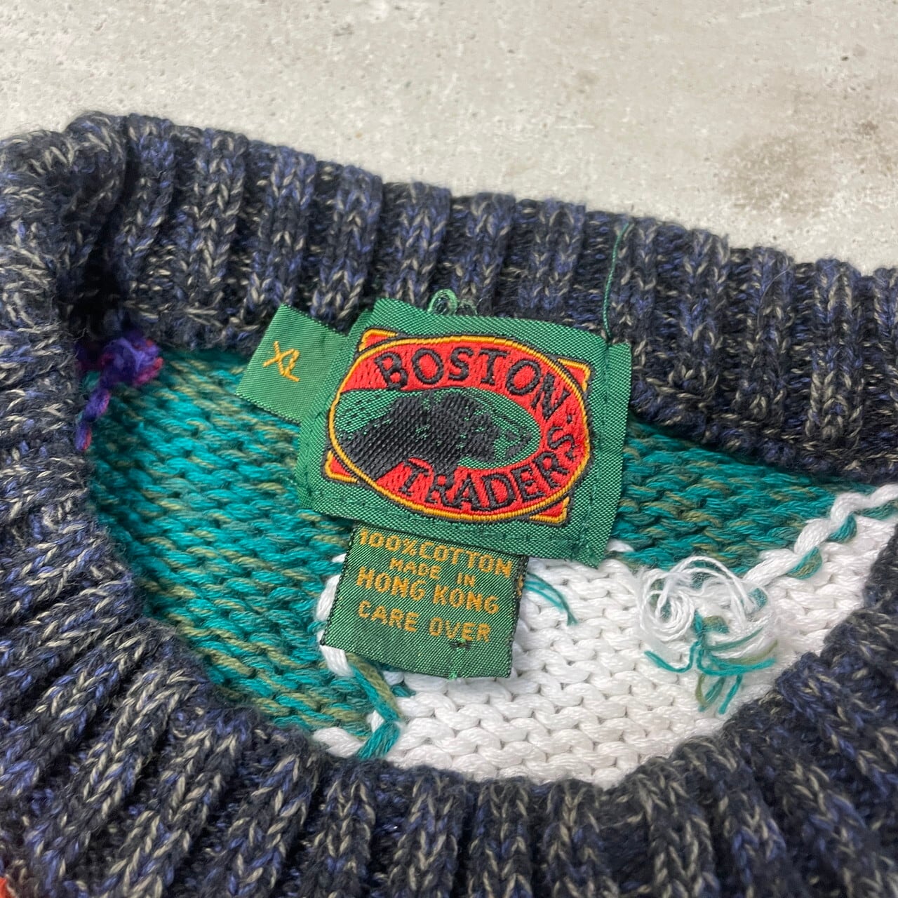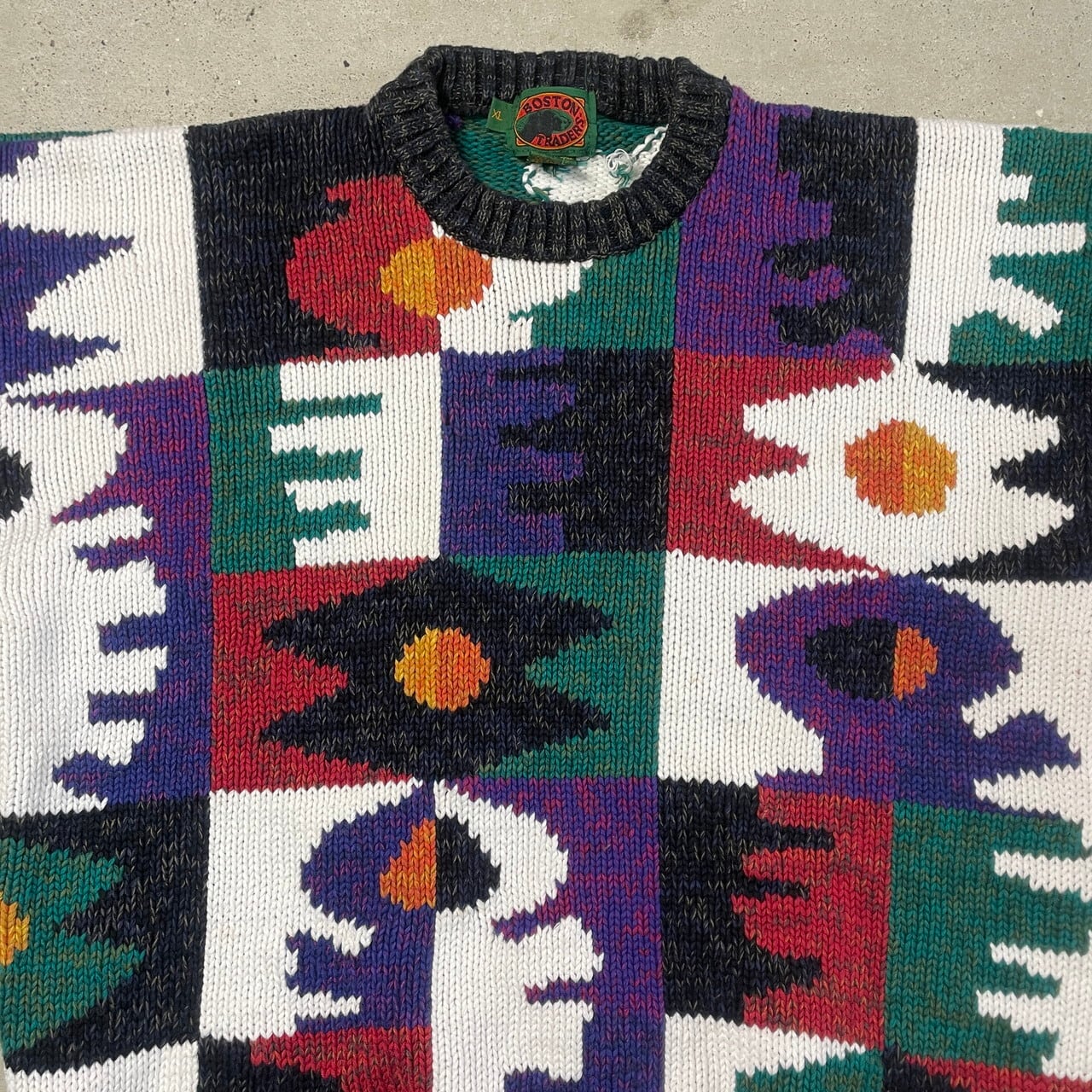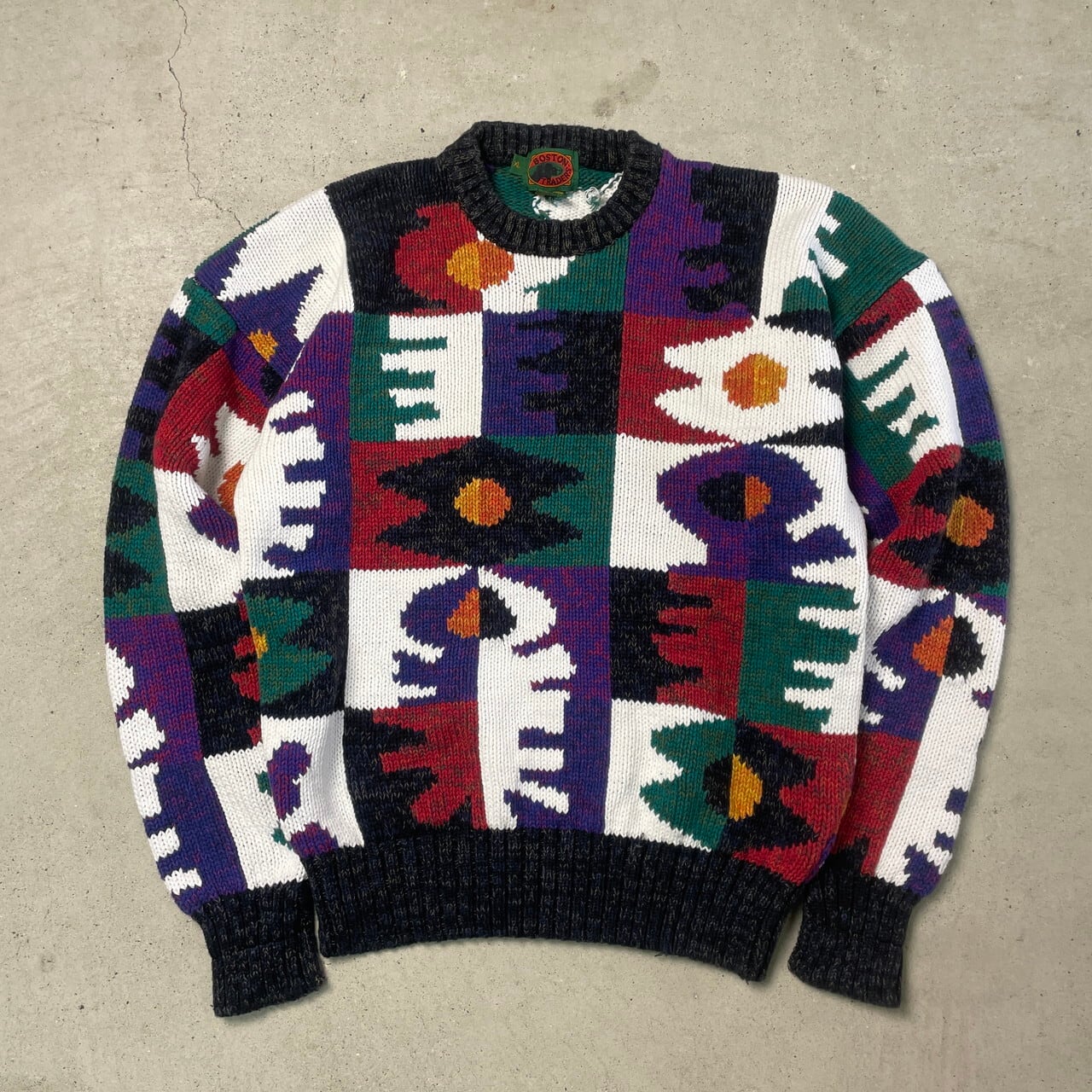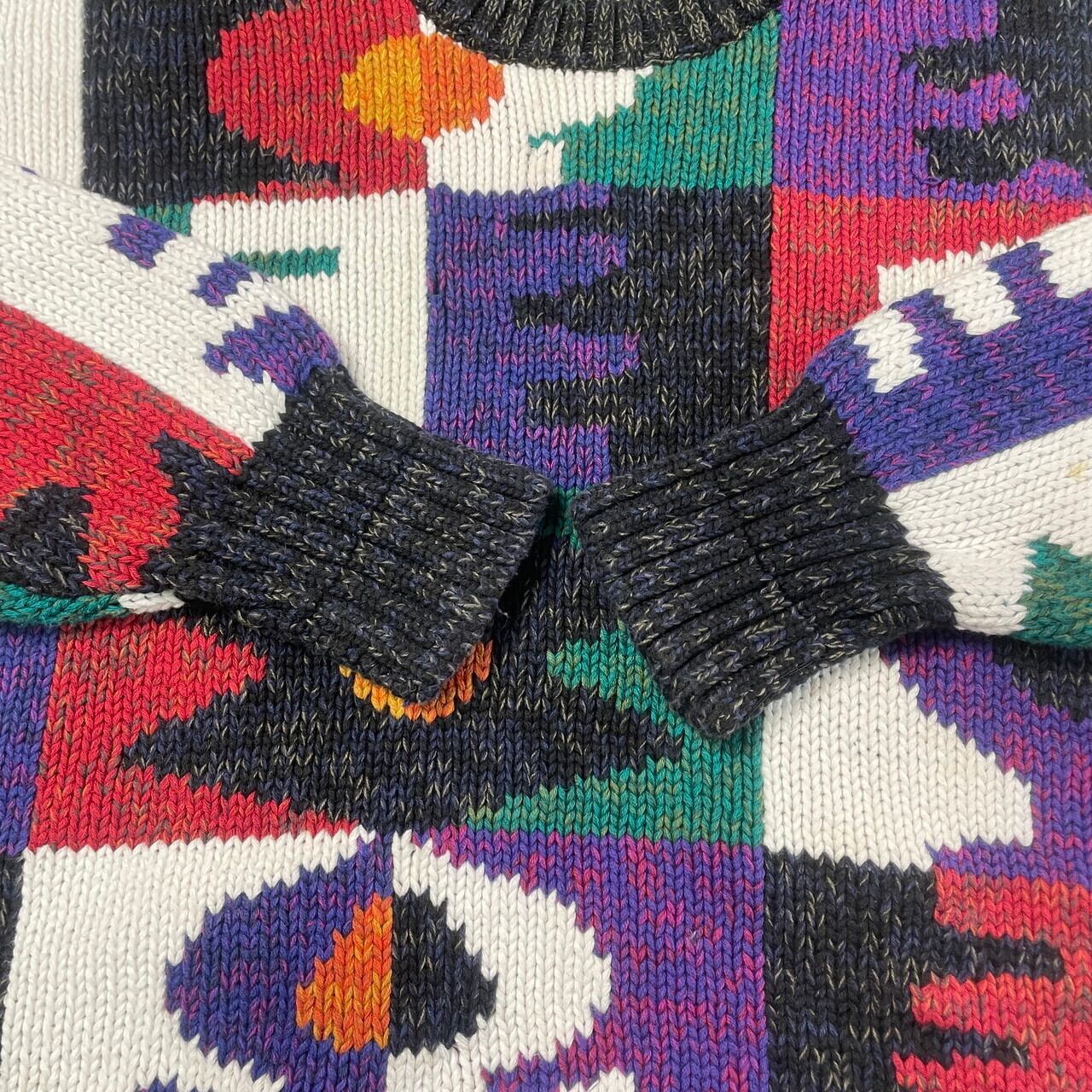 90年代 BOSTON TRADERS 総柄 コットンニットセーター メンズXL相当 古着 90s ヴィンテージ VINTAGE 【ニットセーター】/マルチカラー【SA2501-30】【WS2501-50】