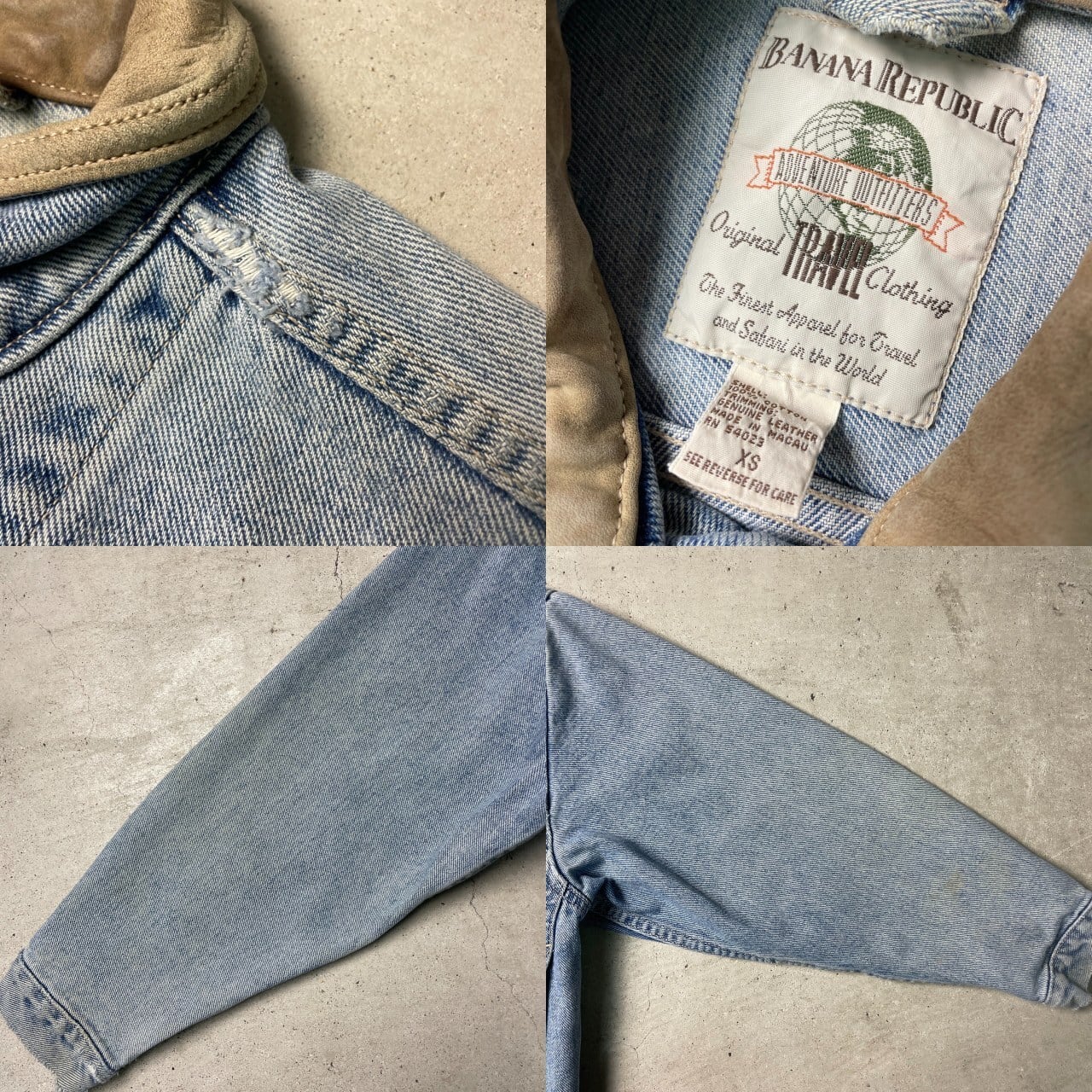 ■80~90年代 BANANA REPUBLIC バナナリパブリック デニムジャケット 襟レザー メンズXS 古着 80s 90s ヴィンテージ VINTAGE オールドバナリパ【デニムジャケット】/ブルー
