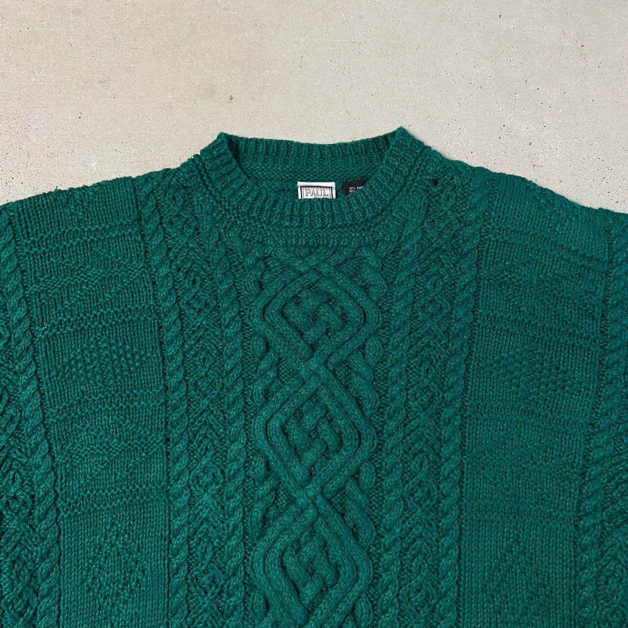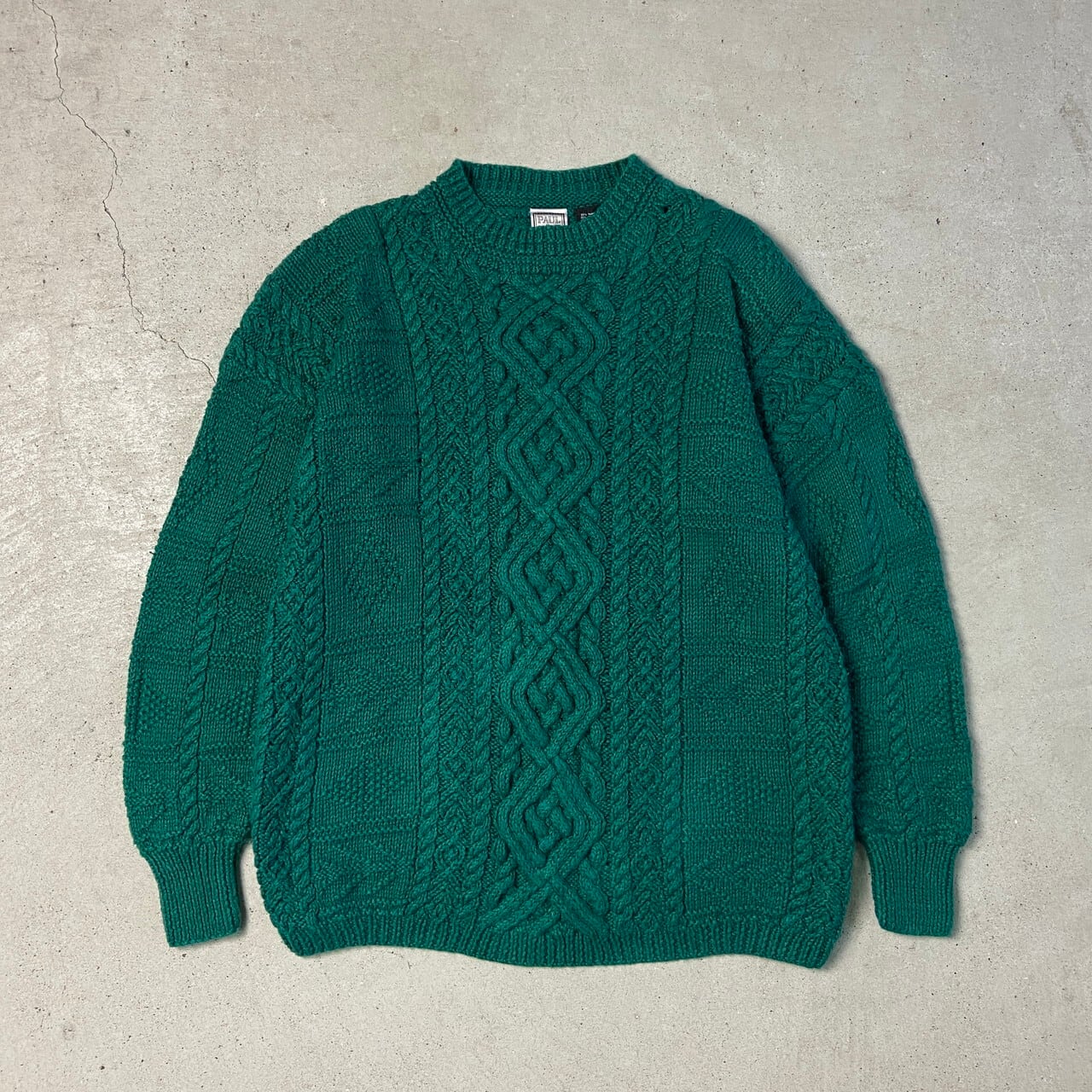 90年代 PAUL&Duffier フィッシャーマンニットセーター メンズL レディース 古着 00s VINTAGE ヴィンテージ グリーン 緑色【ニットセーター】/グリーン【BS25-50】