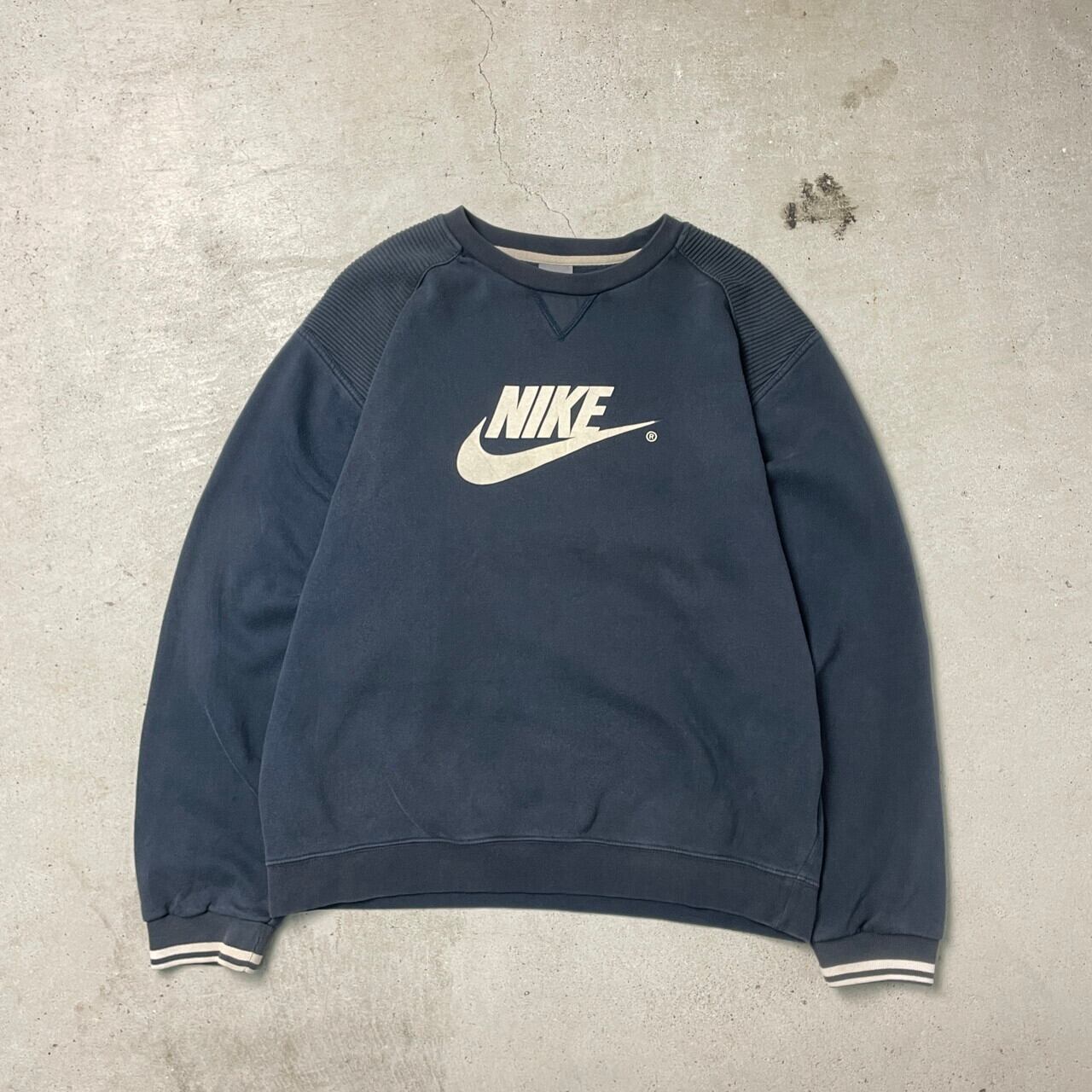 00年代 NIKE ナイキ スウェットシャツ ロゴプリント メンズM 古着 00s ビンテージ ヴィンテージ Y2K トレーナー デザイン 切り替え フェードネイビー 紺 ホワイト 白 【スウェット】/ネイビー