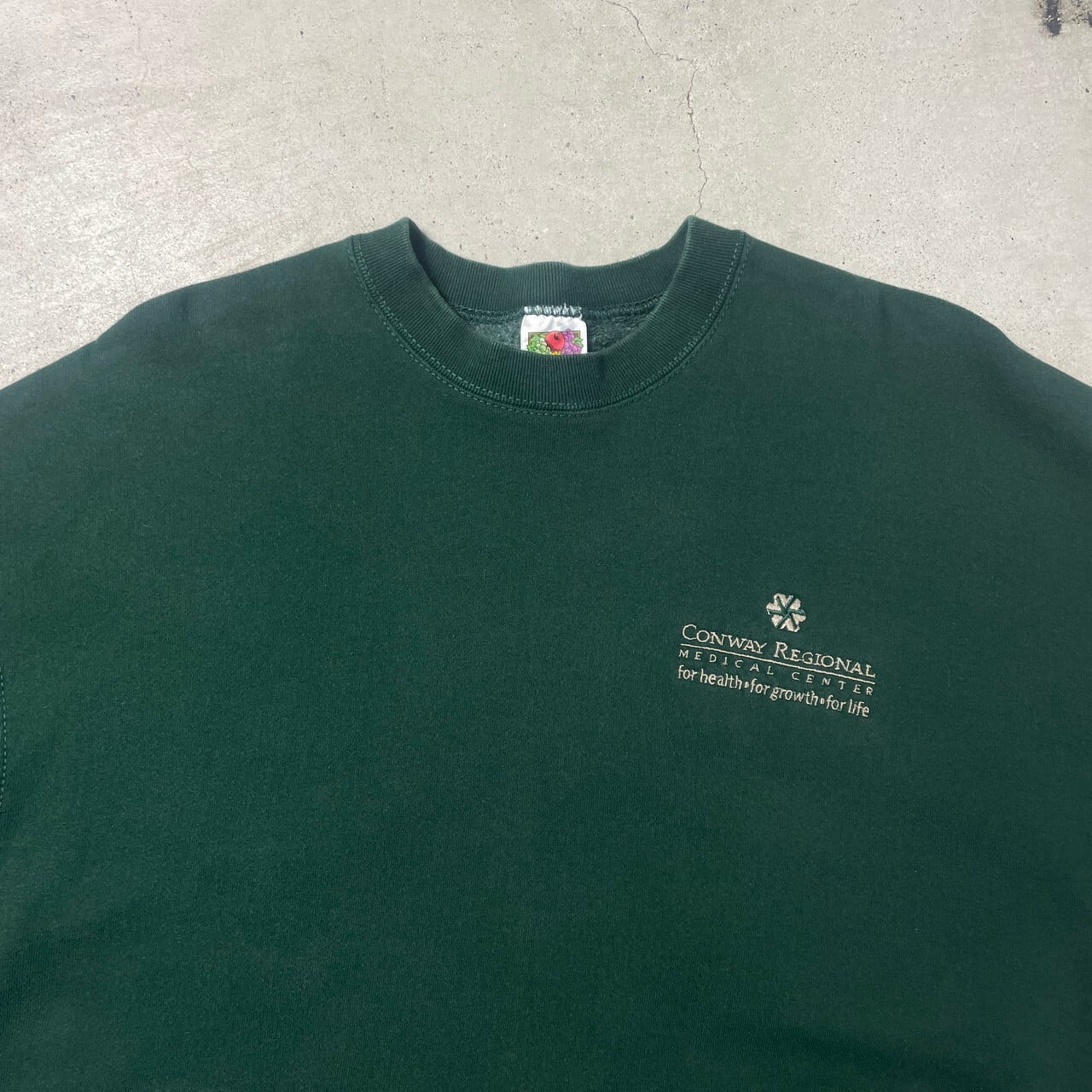 90年代 USA製 FRUIT OF THE LOOM フルーツオブザルーム スウェットシャツ 企業ロゴ刺繍 メンズ2XL 古着 90s ヴィンテージ VINTAGE トレーナー 緑色【スウェット】/グリーン【WS2501-50】